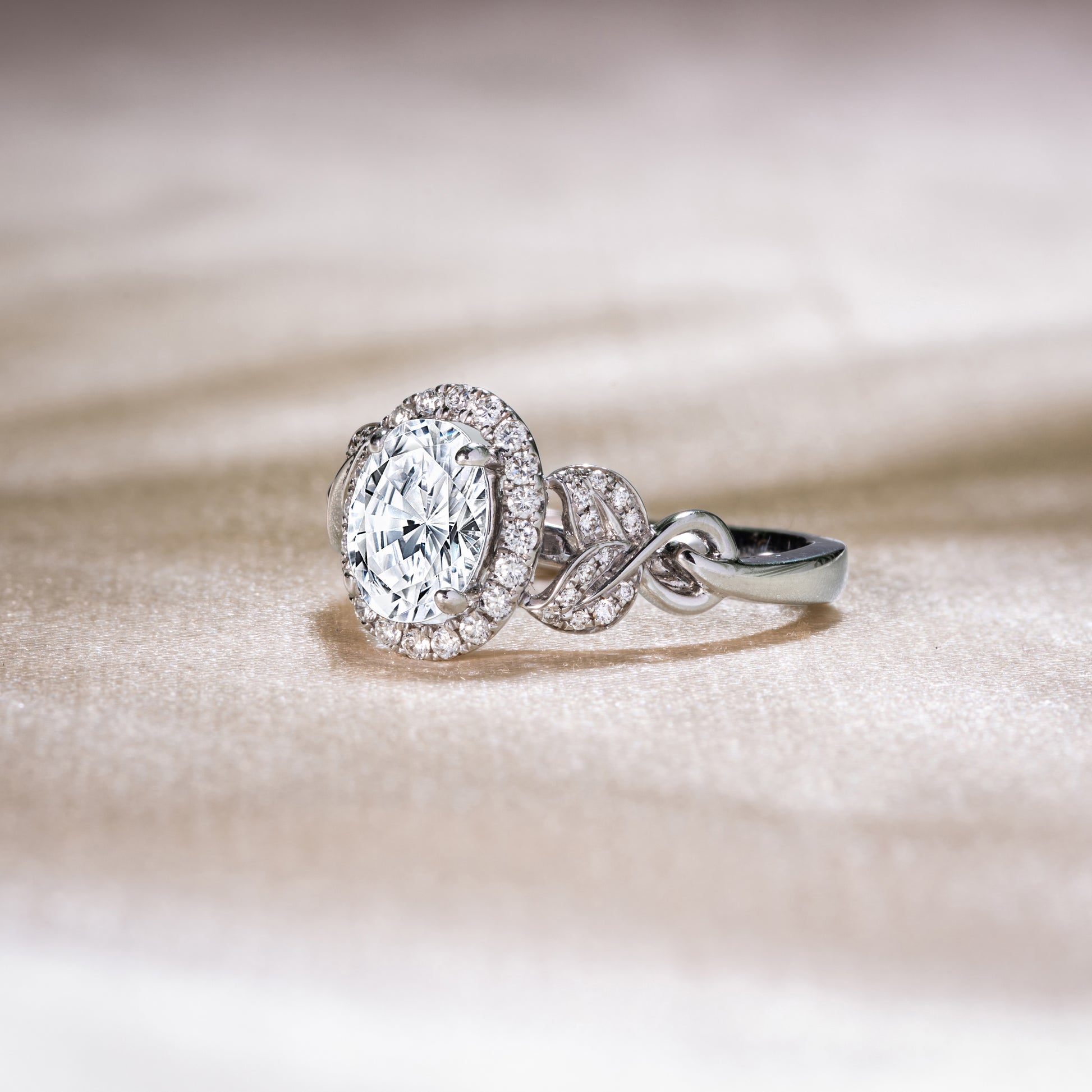 Oval Pavé Leaf Halo Diamond Engagement Ring