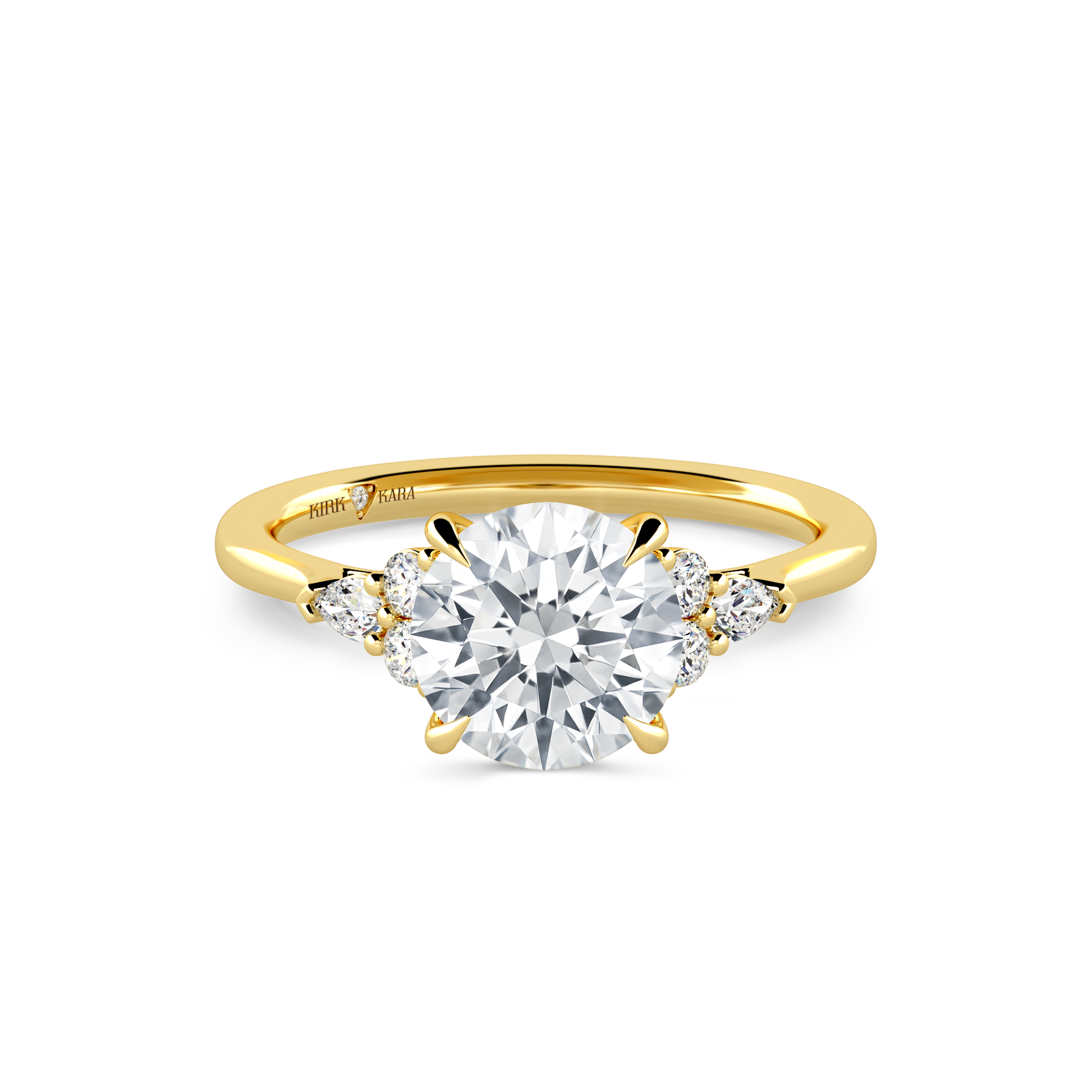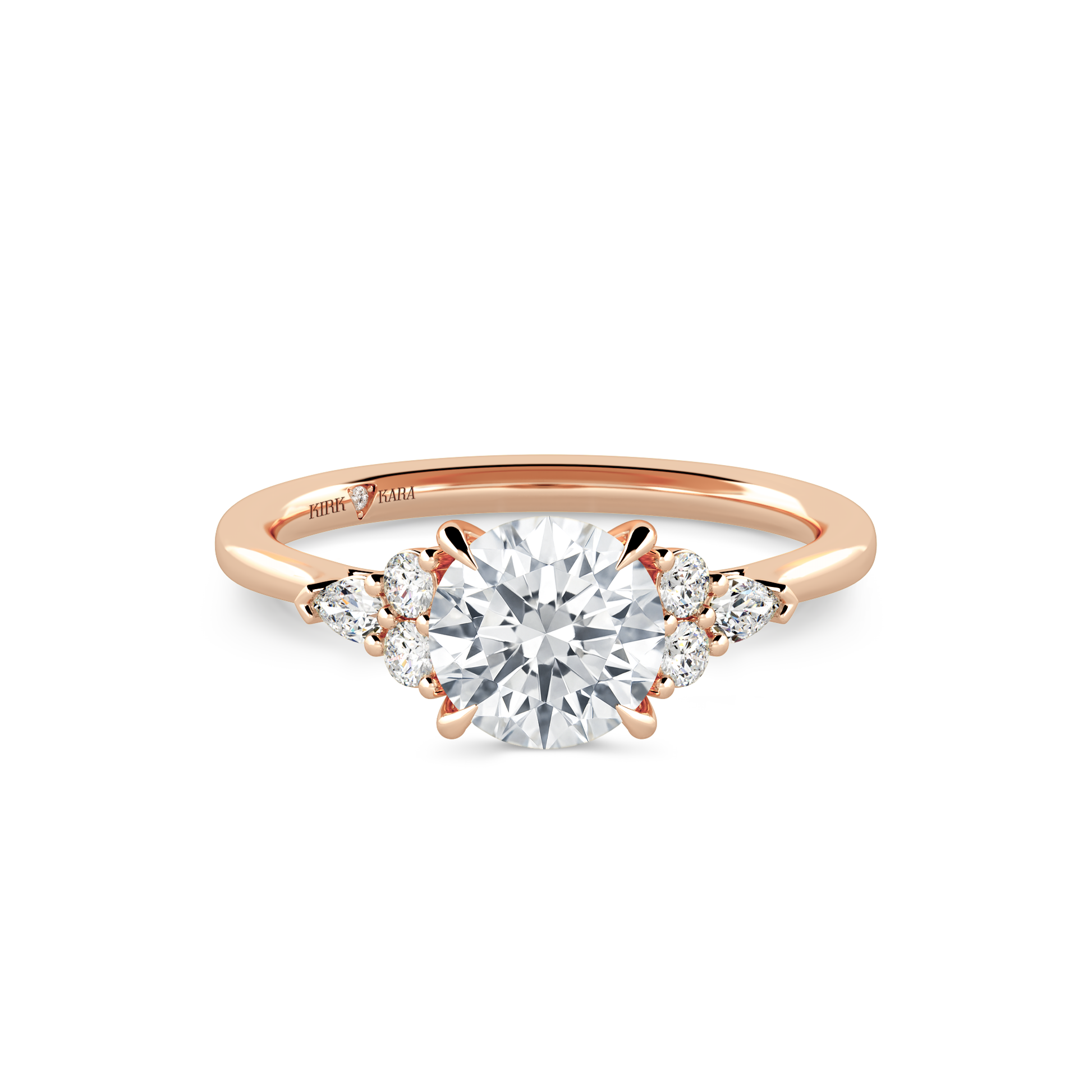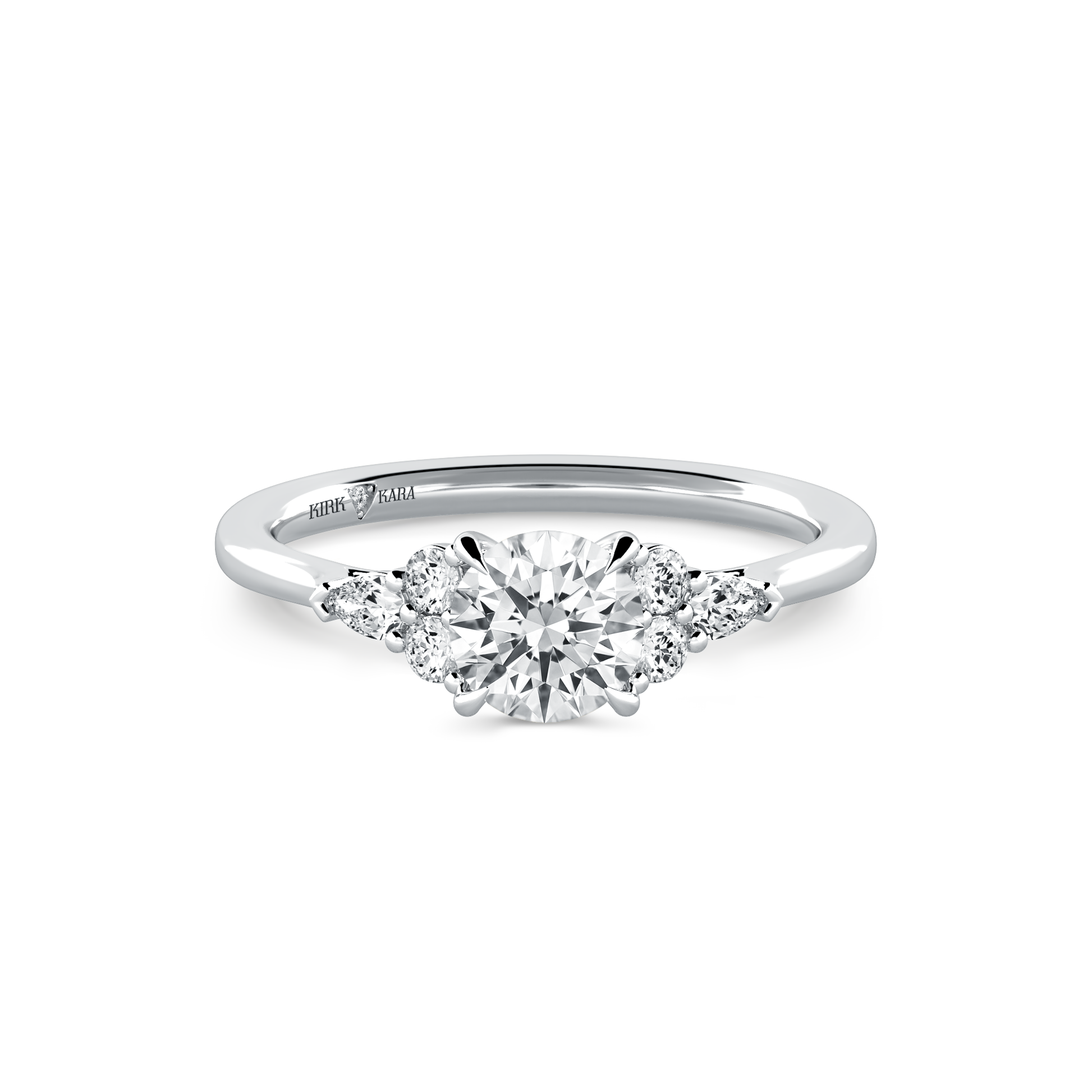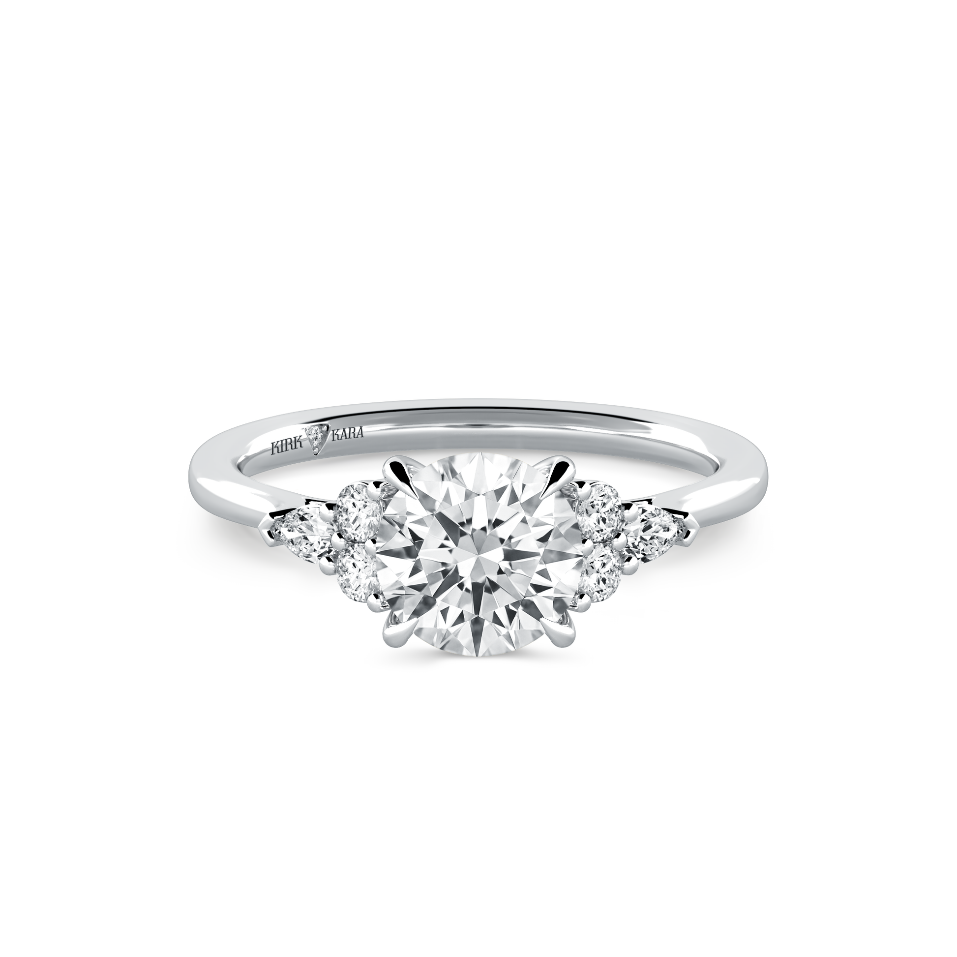This classic diamond cluster accent ring is an exclusive design from Kirk Kara. It features 1/4 ctw of lab grown diamond accents. This engagement ring arrives complete, set with a Round lab grown center diamond. Available with your choice of of center stone sizes 1.00ct - 4.00ct.