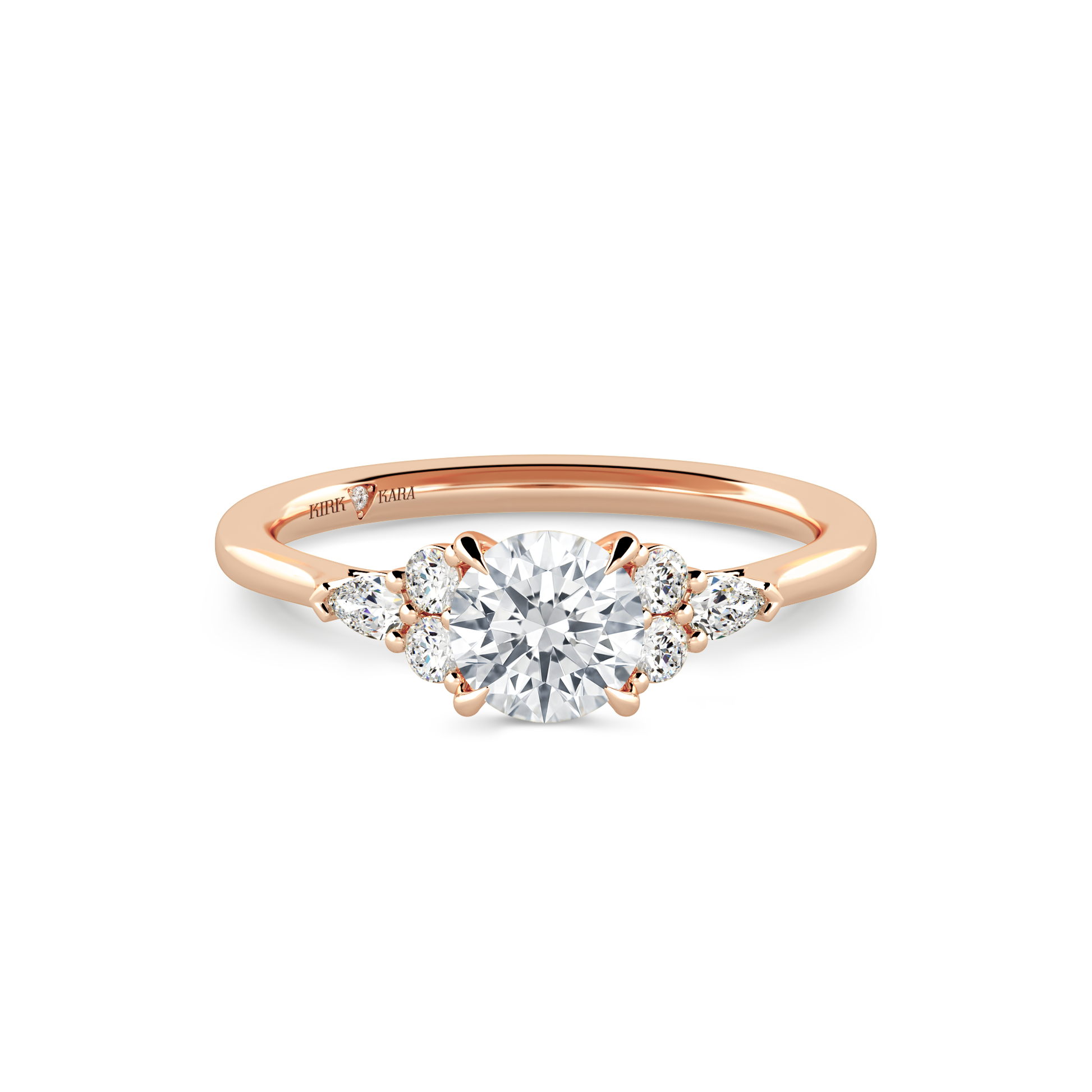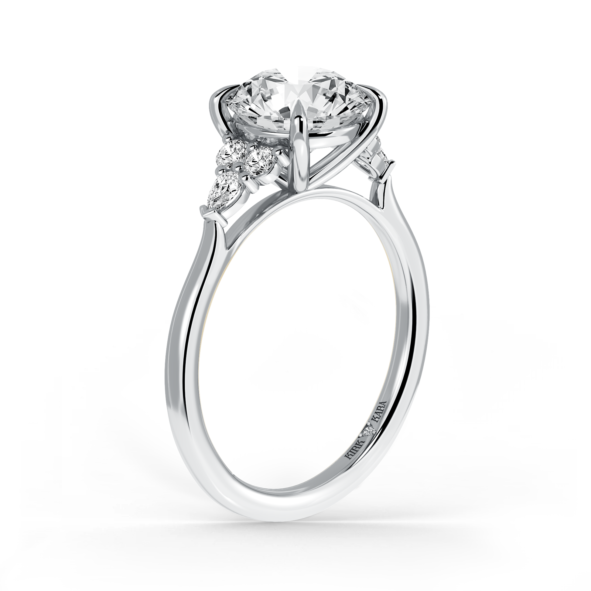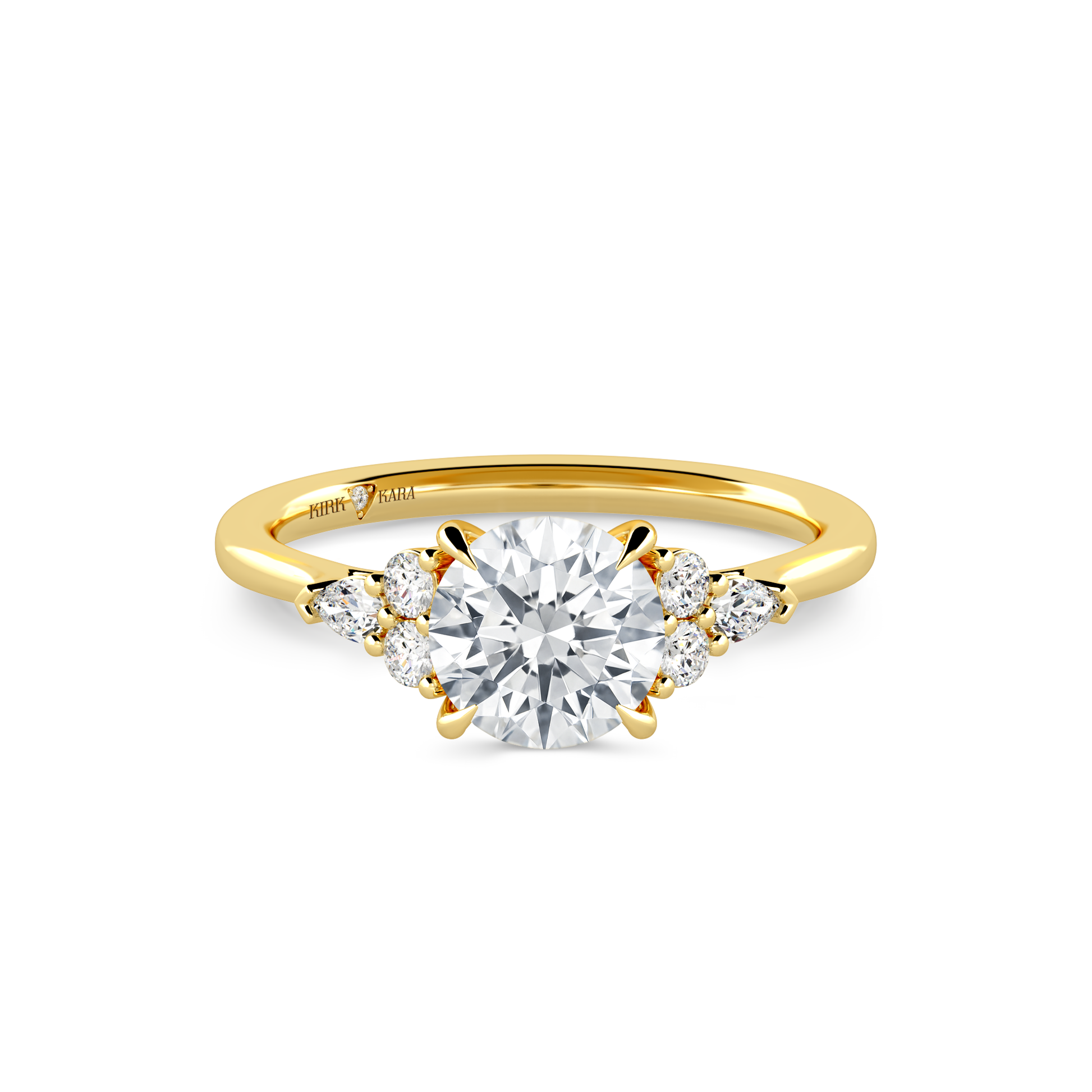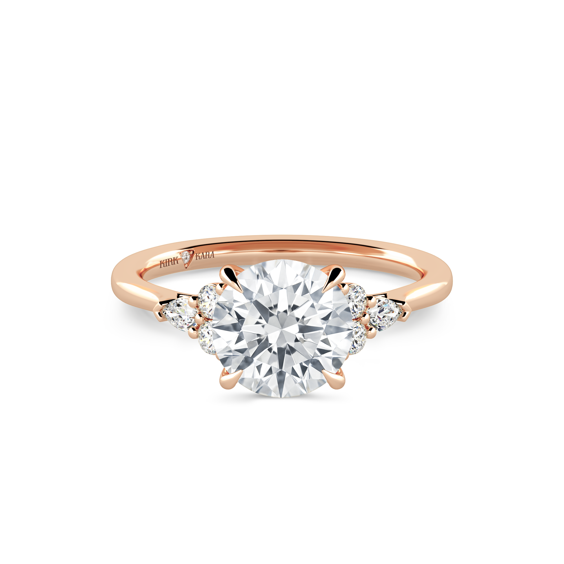 This classic diamond cluster accent ring is an exclusive design from Kirk Kara. It features 1/4 ctw of lab grown diamond accents. This engagement ring arrives complete, set with a Round lab grown center diamond. Available with your choice of of center stone sizes 1.00ct - 4.00ct.