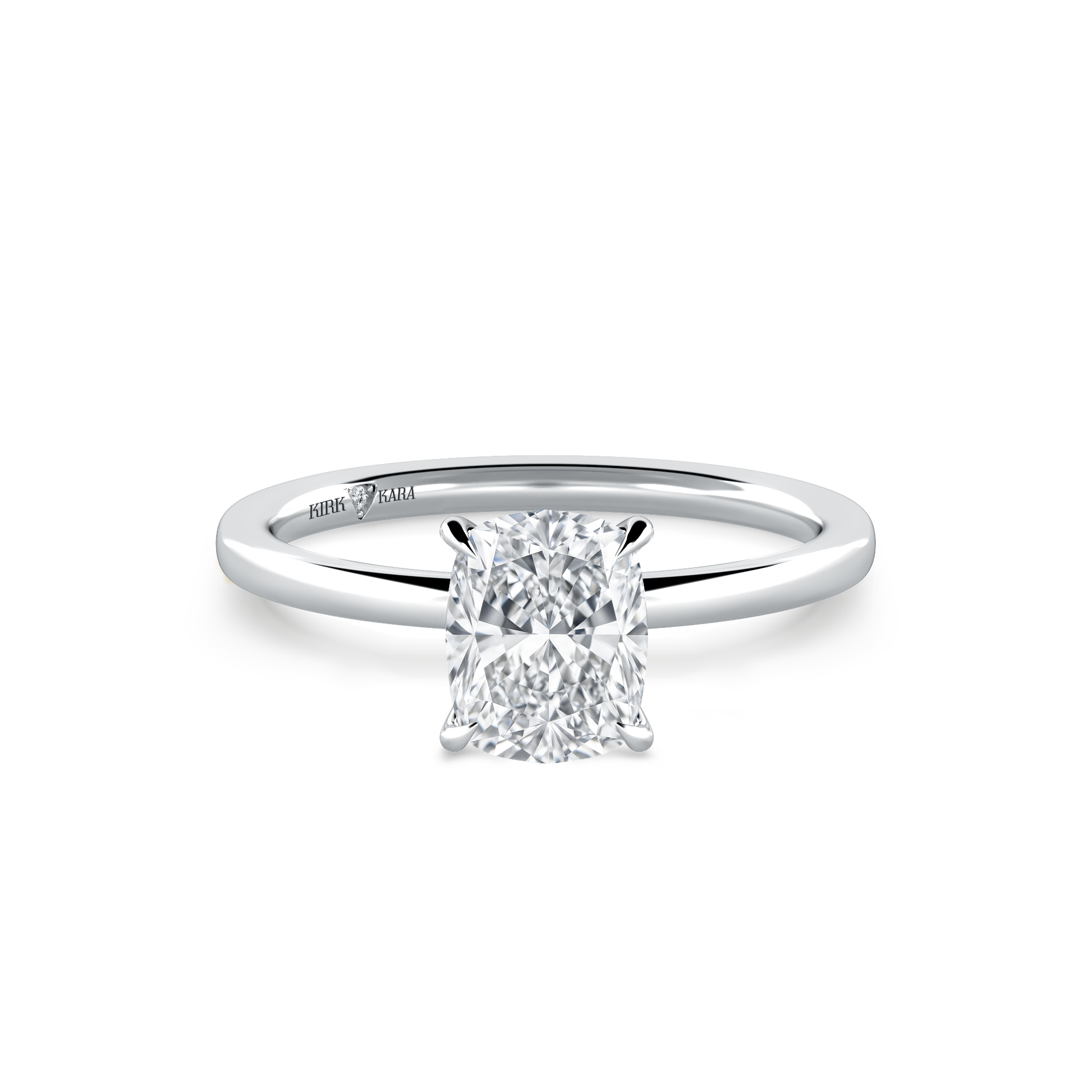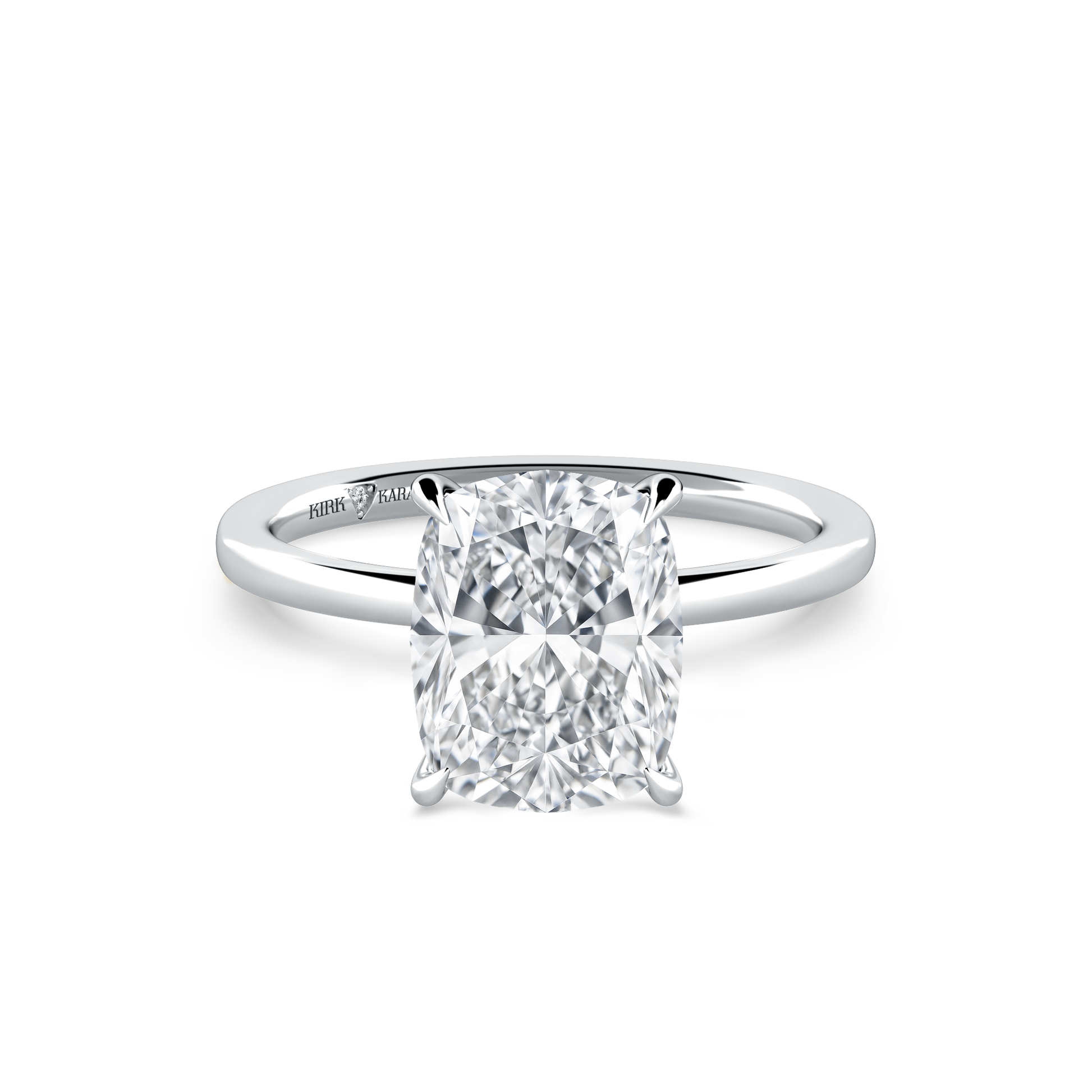 This classic solitaire ring is an exclusive design from Kirk Kara. This engagement ring arrives complete, set with a Cushion lab grown center diamond. Available with your choice of of center stone sizes 1.00ct - 4.00ct.