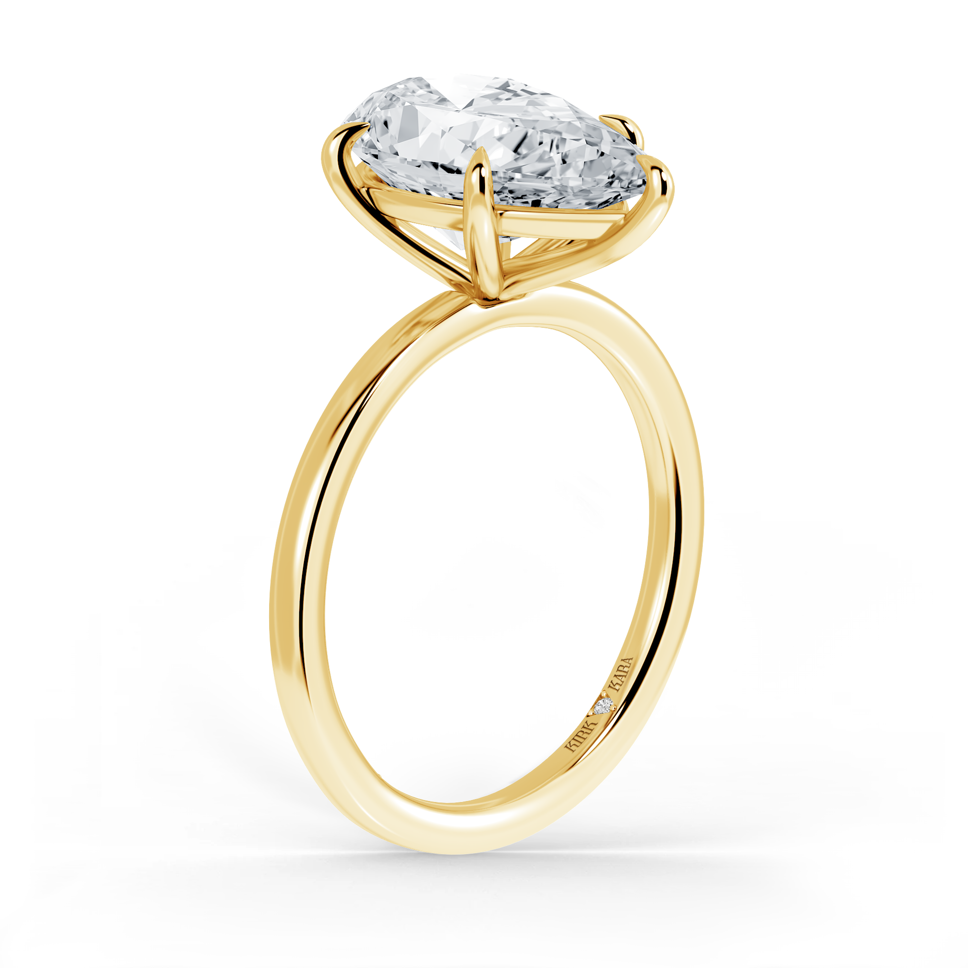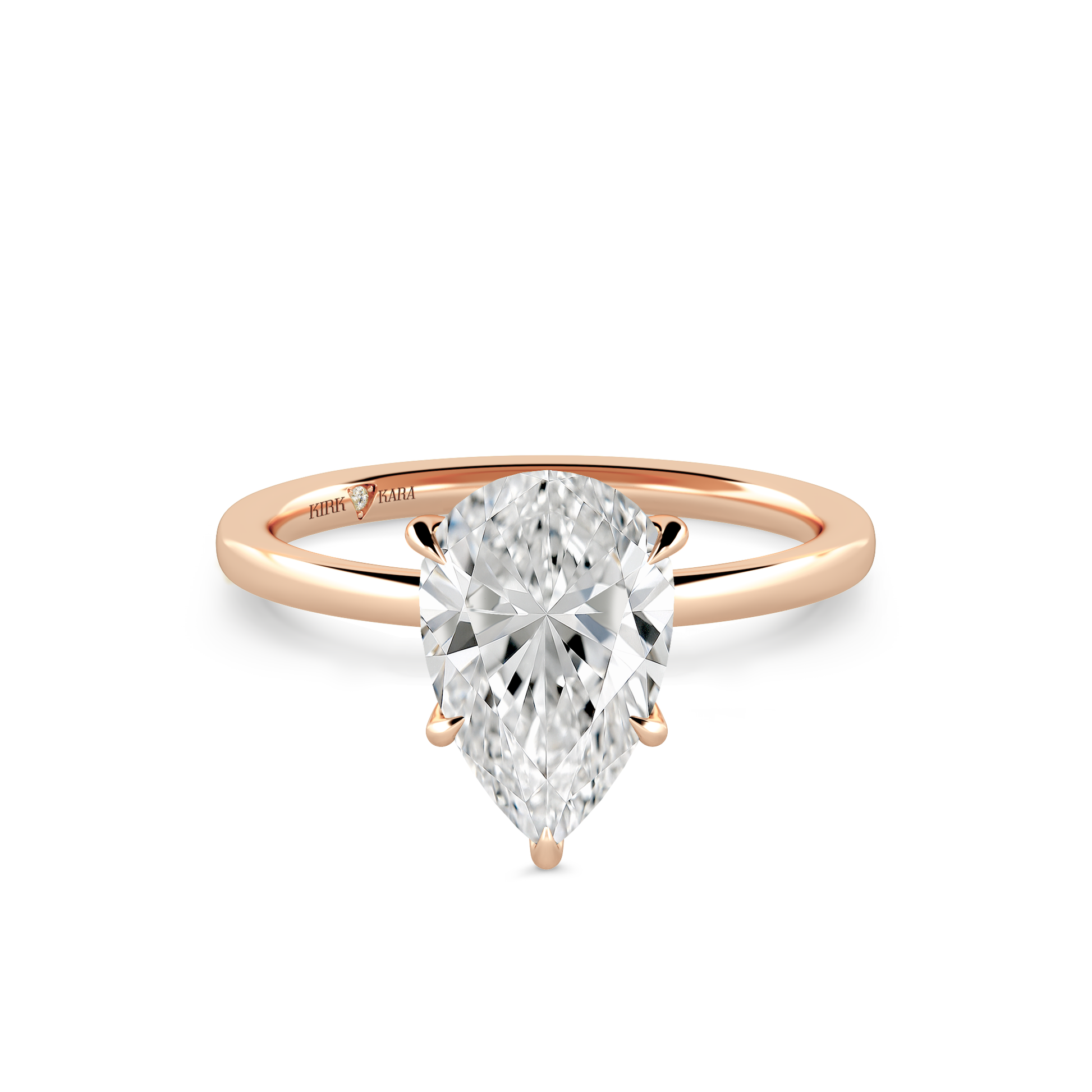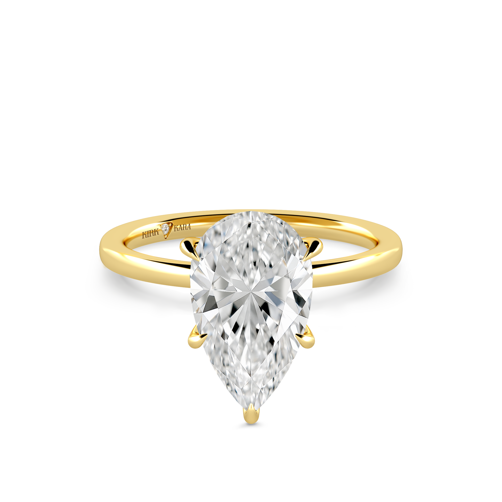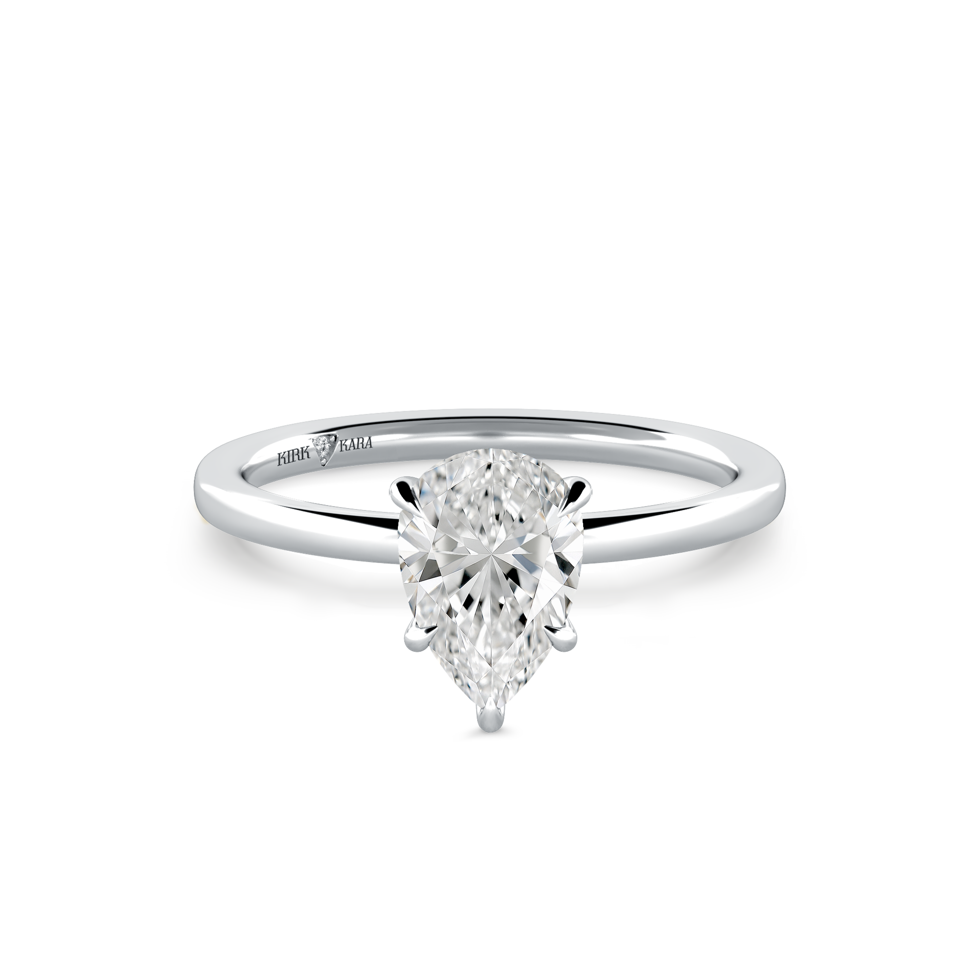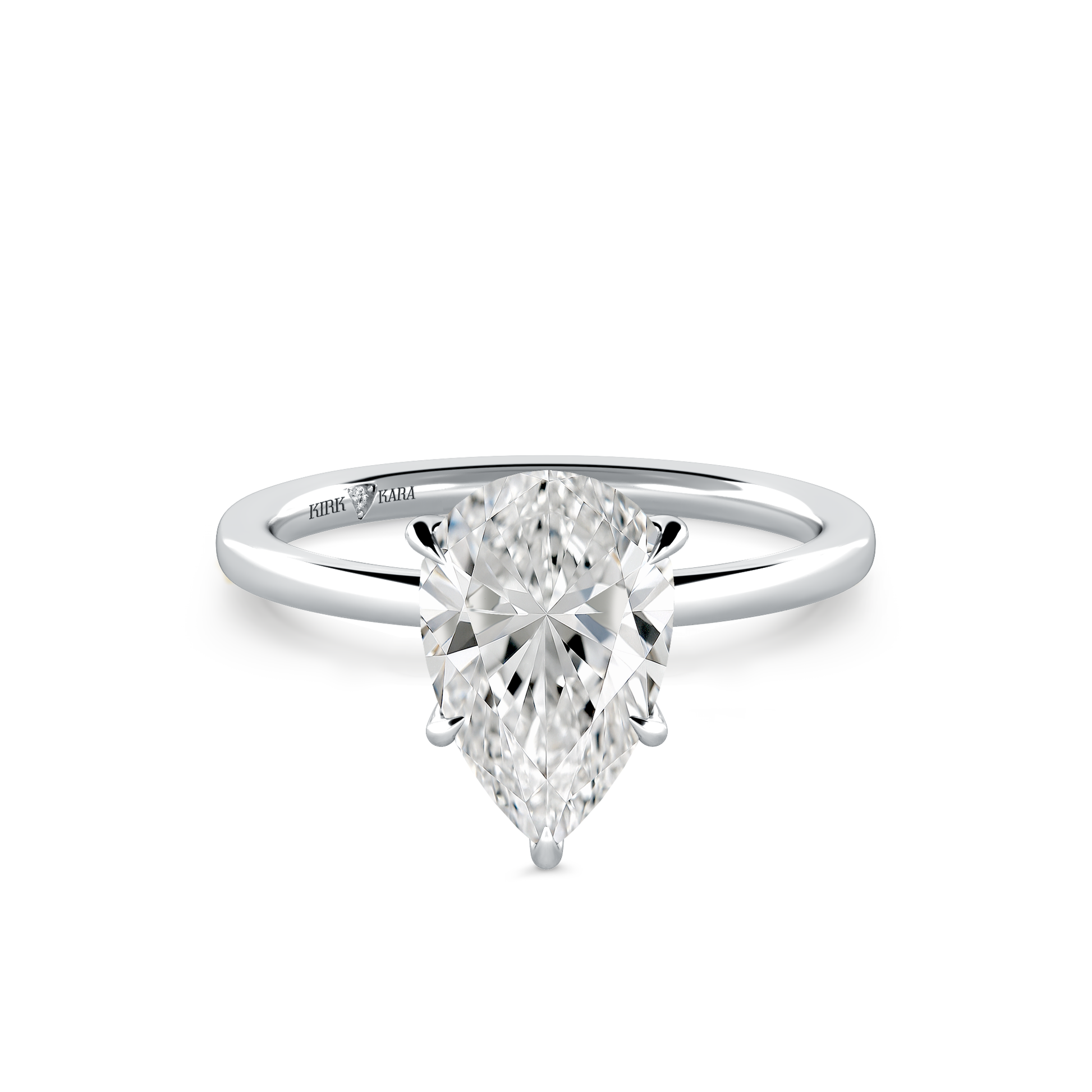 This classic solitaire ring is an exclusive design from Kirk Kara. This engagement ring arrives complete, set with a Pear lab grown center diamond. Available with your choice of of center stone sizes 1.00ct - 4.00ct.