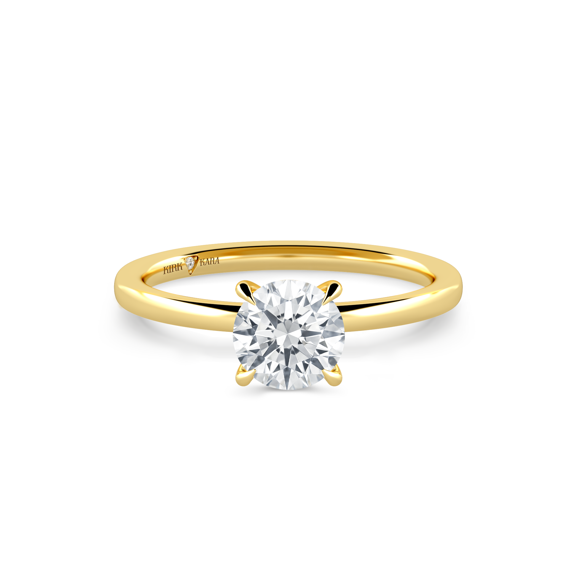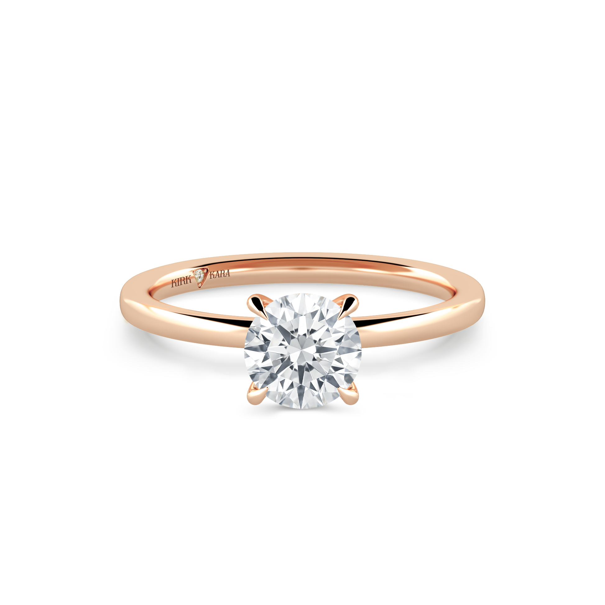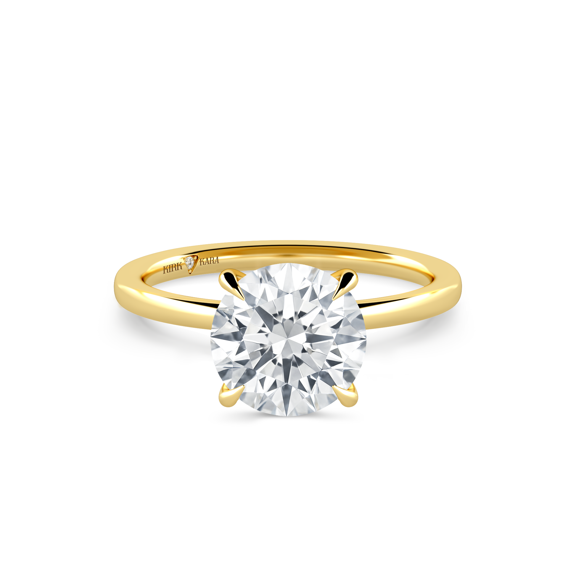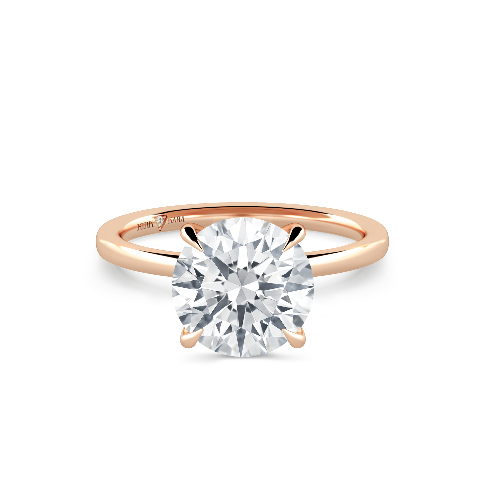 This classic solitaire ring is an exclusive design from Kirk Kara. This engagement ring arrives complete, set with a Round lab grown center diamond. Available with your choice of of center stone sizes 1.00ct - 4.00ct.