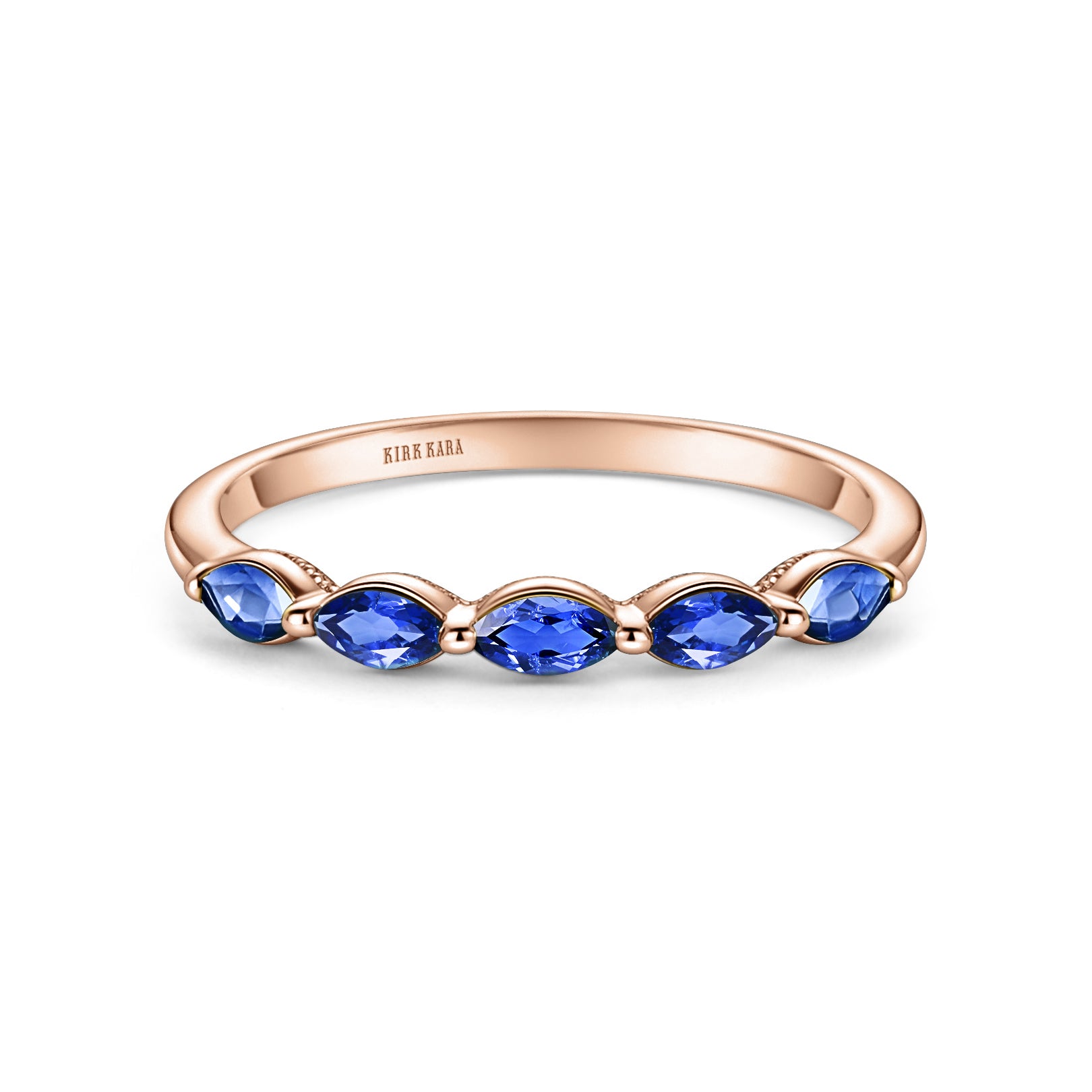 Prong Set Milgrain Marquise Blue Sapphire Wedding Band