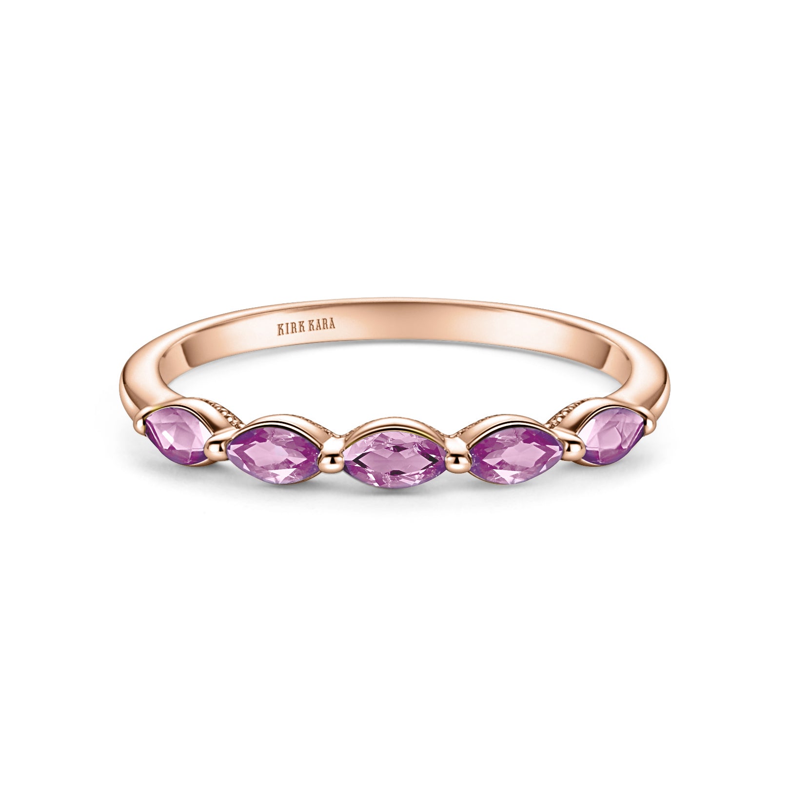 Prong Set Milgrain Marquise Pink Sapphire Wedding Band