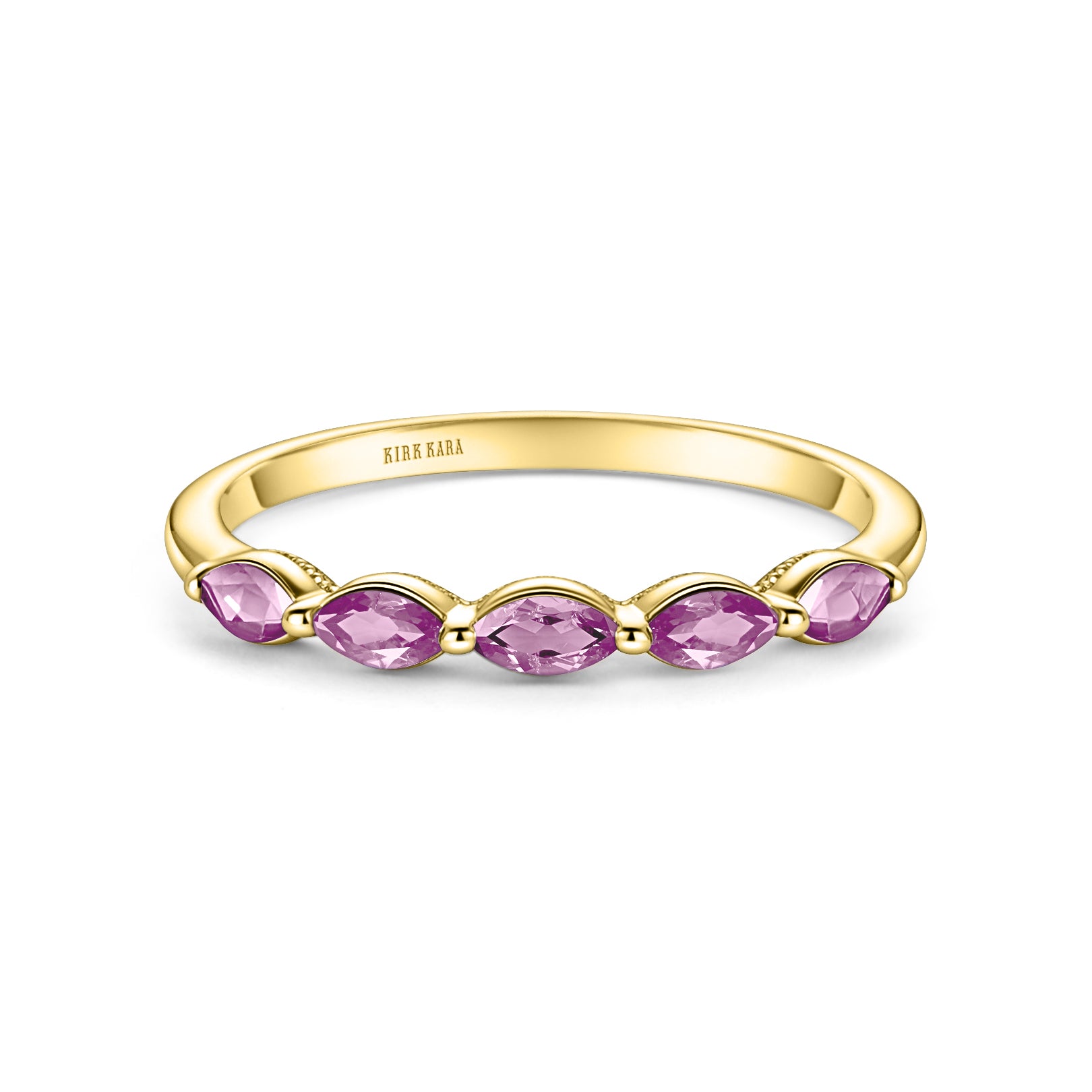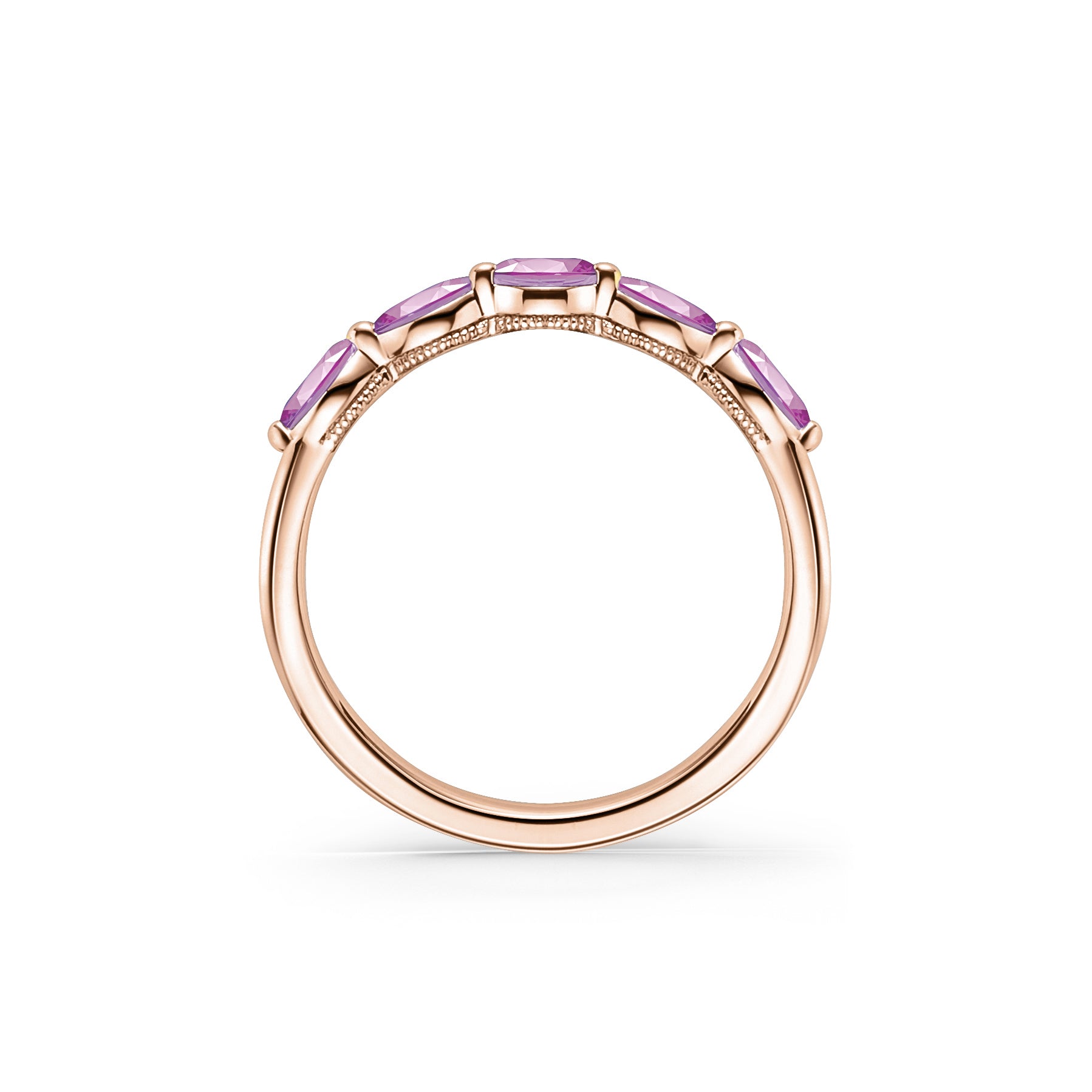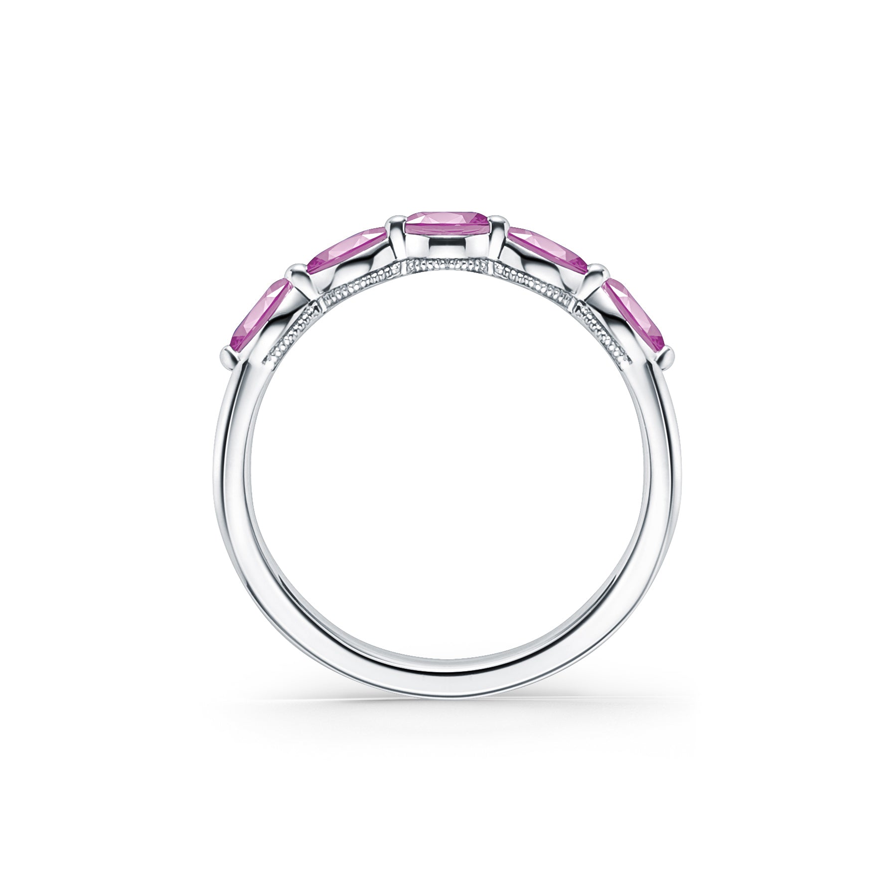 This timeless classic is a ladies' band from the Stella collection. It features natural pink sapphire marquise and signature handcrafted milgrain edging.