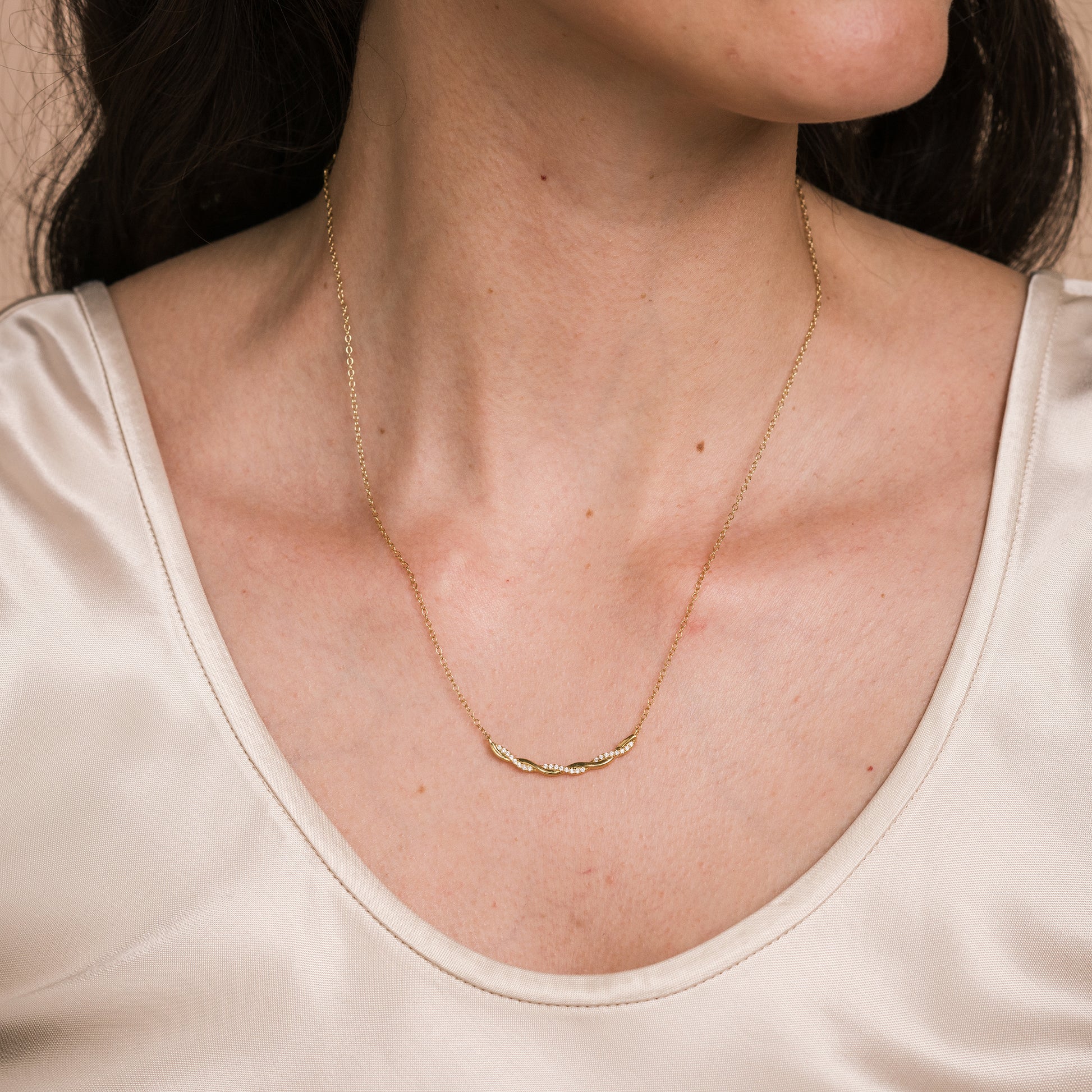 Thin Classic Diamond Twist Bar Necklace