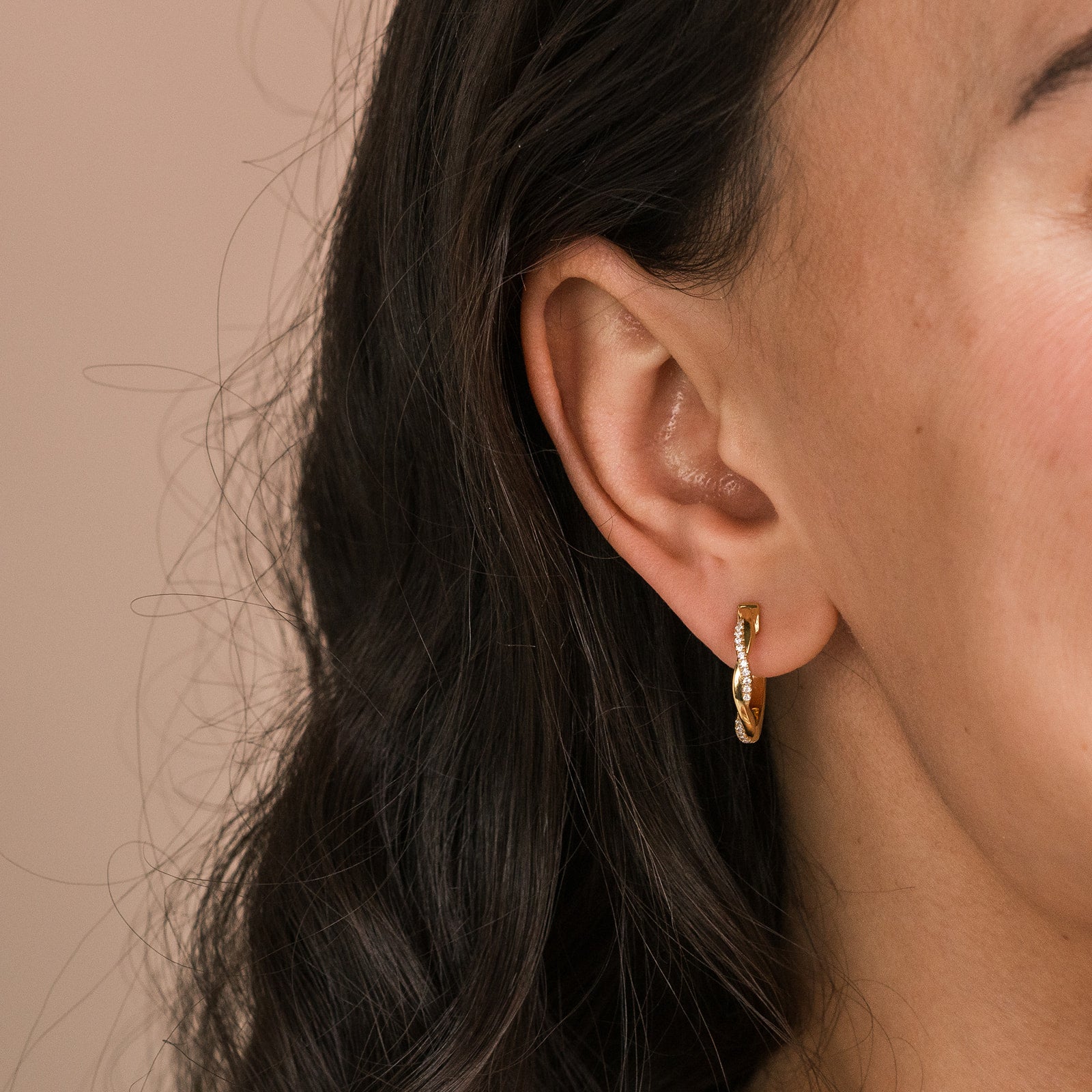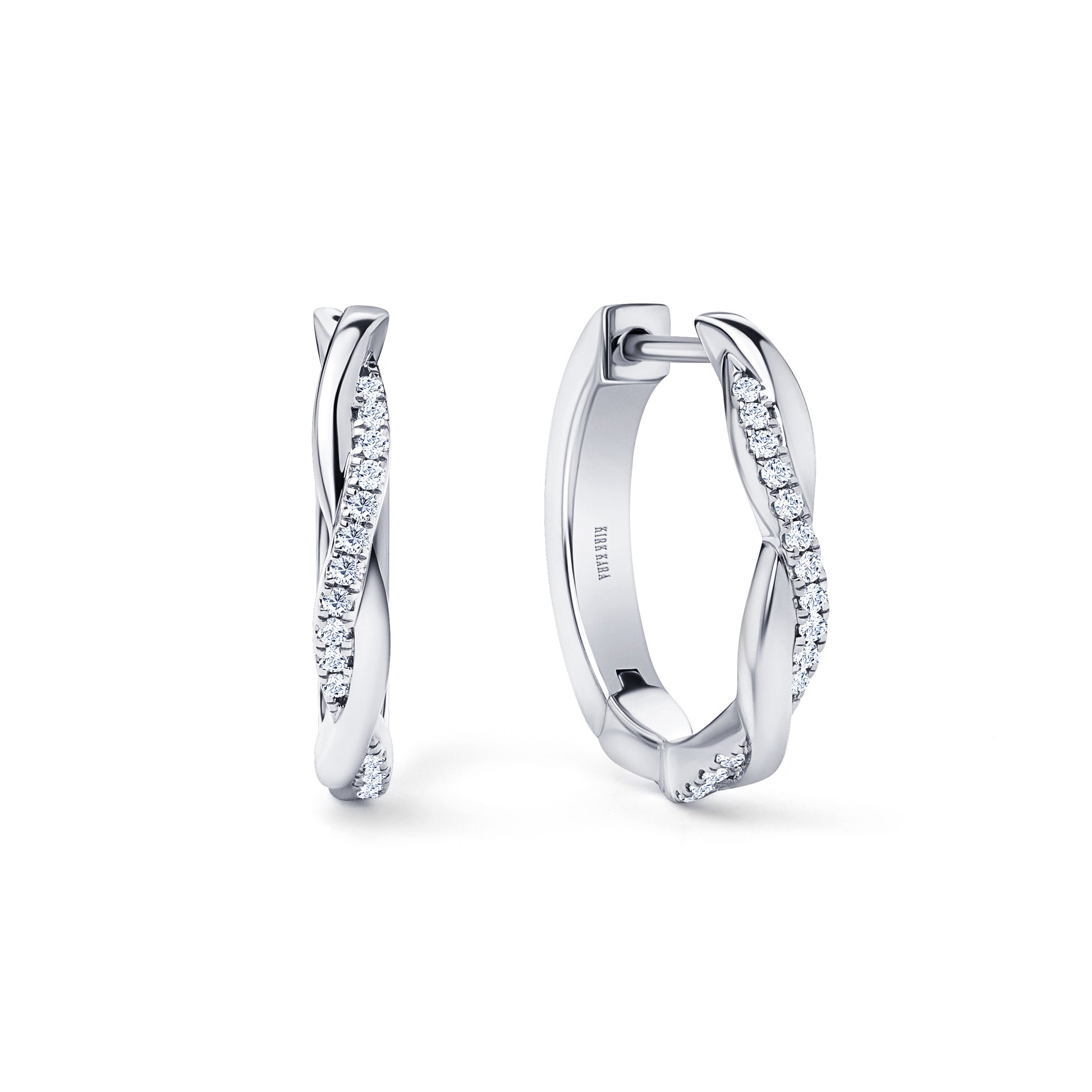 This romantic design are twisted diamond hoop earrings from the Pirouetta collection. They features 1/5 ctw of diamonds. Both lab grown and natural diamonds are available for these earrings.