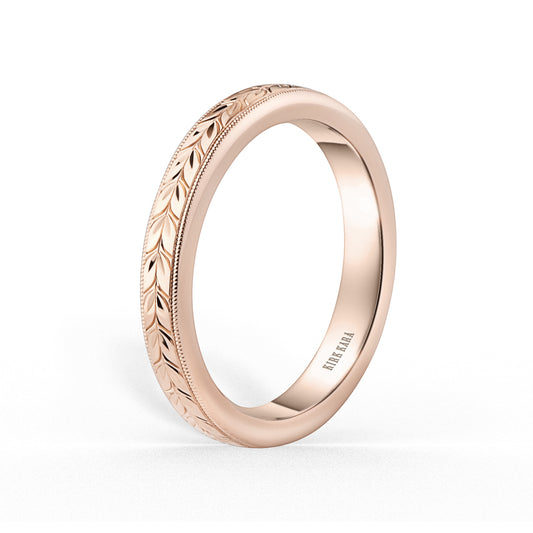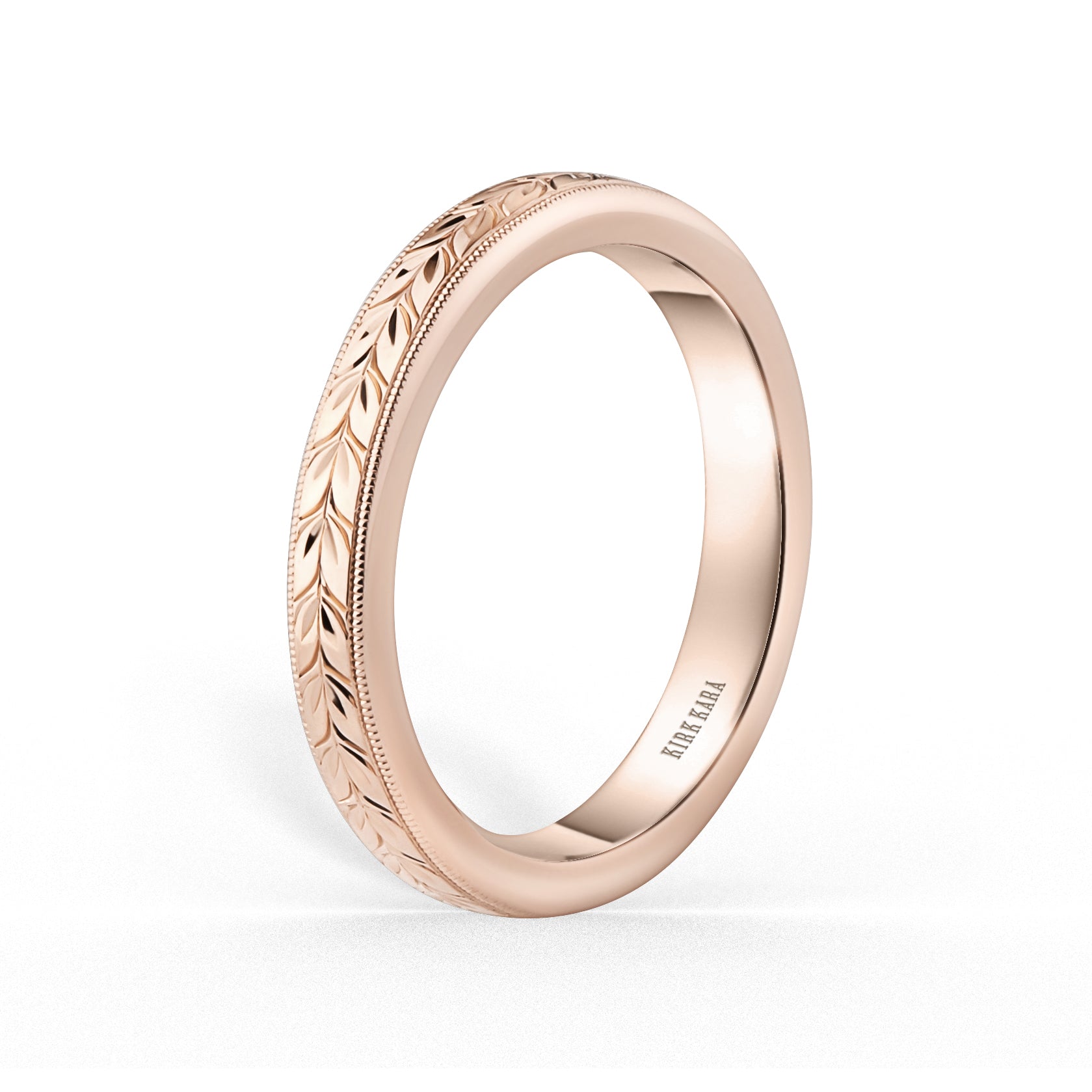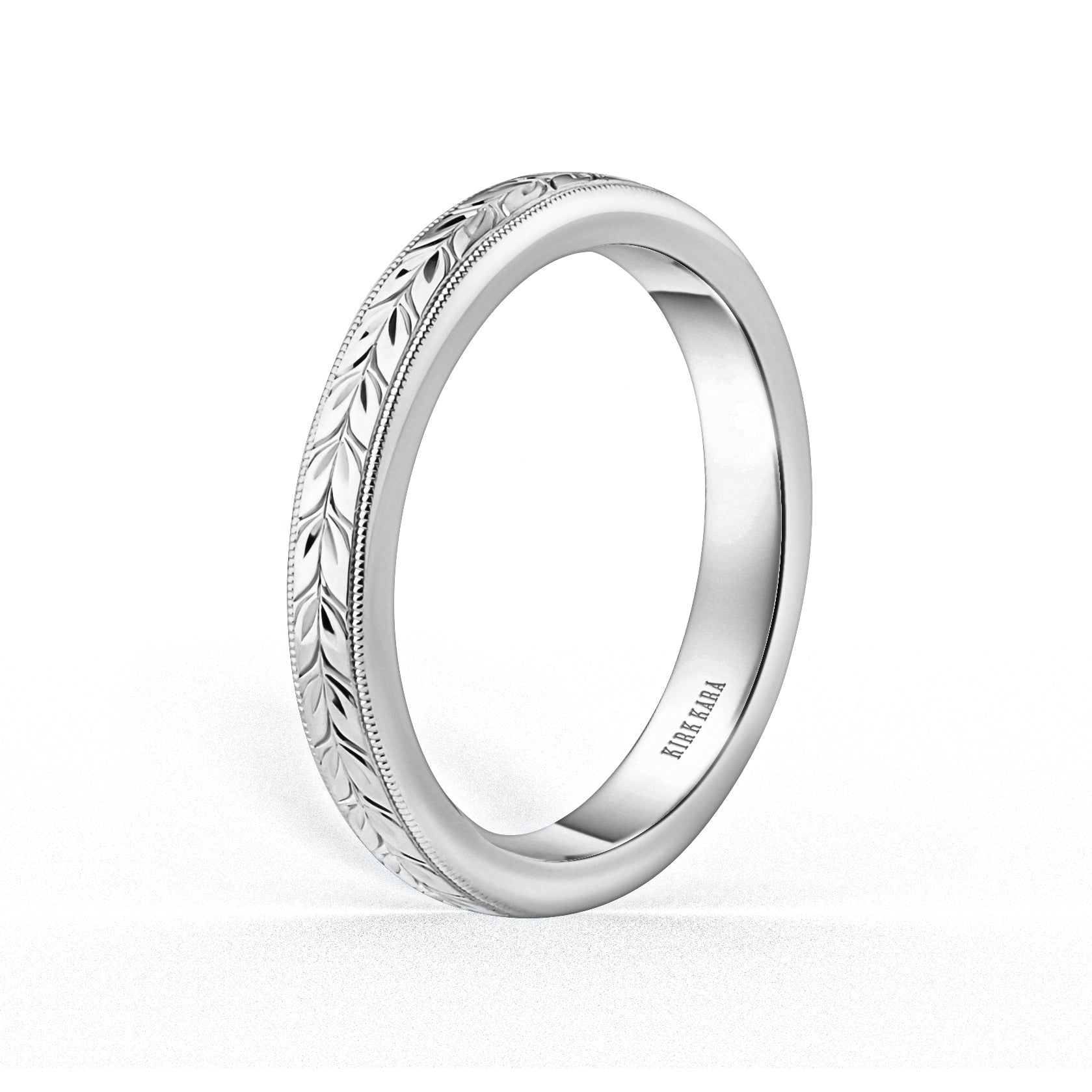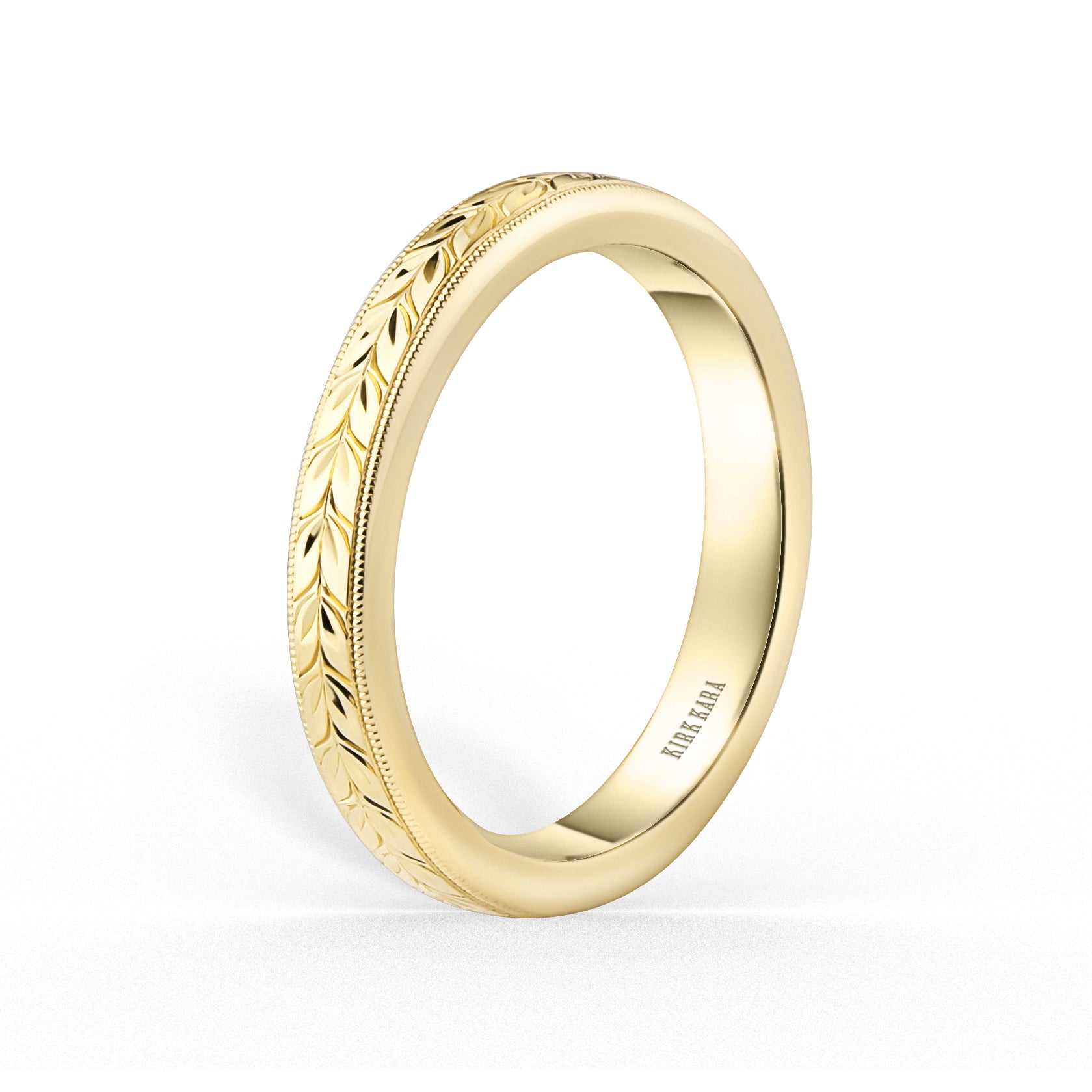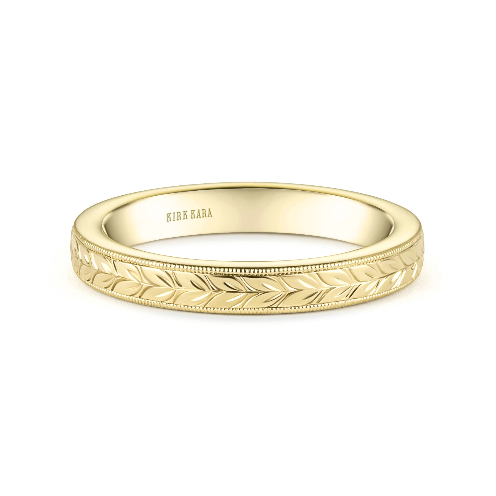 This comfort fit 3mm wedding band is from the Artin collection. The signature handcrafted details include wheat hand engravings and milgrain edging. Also available in multiple widths.