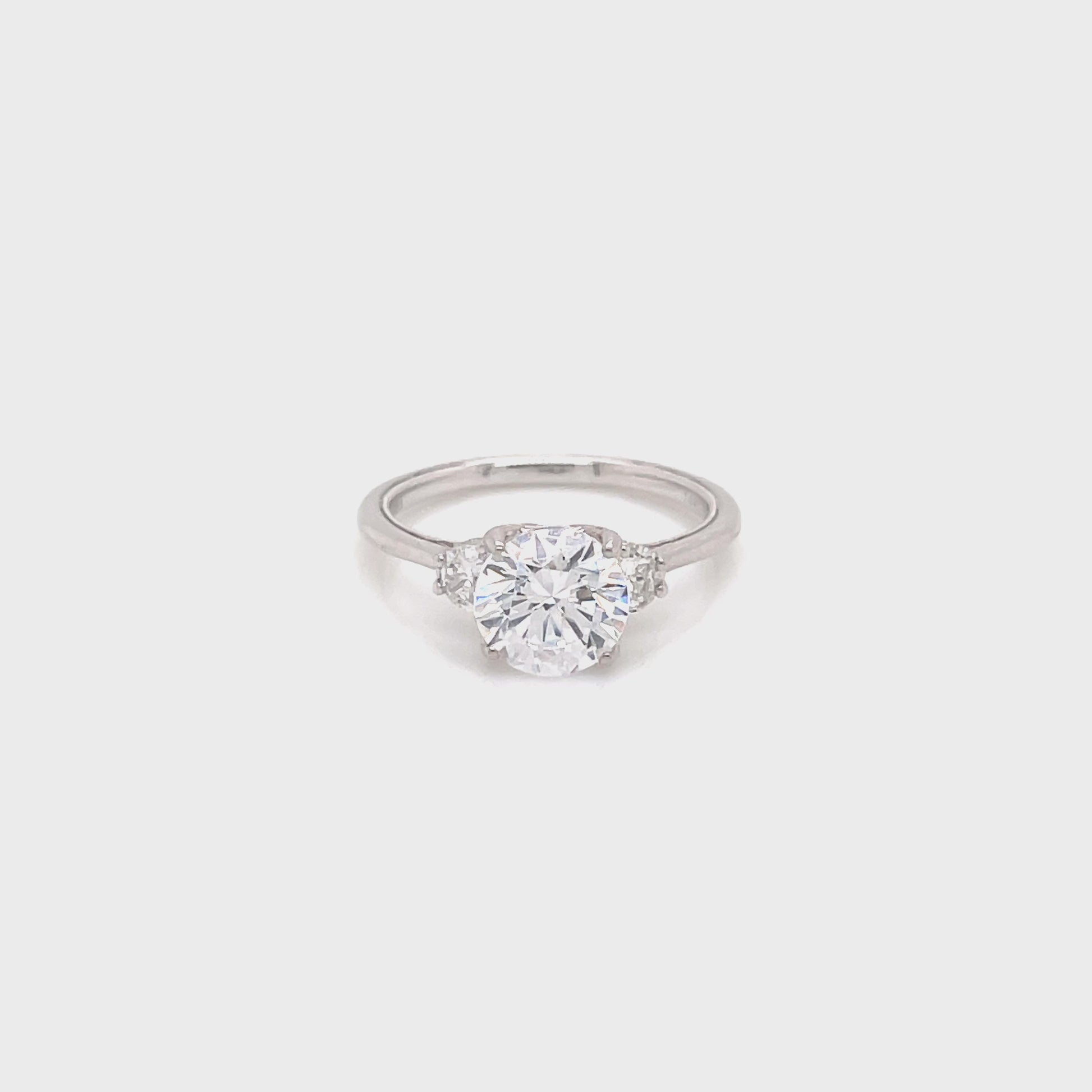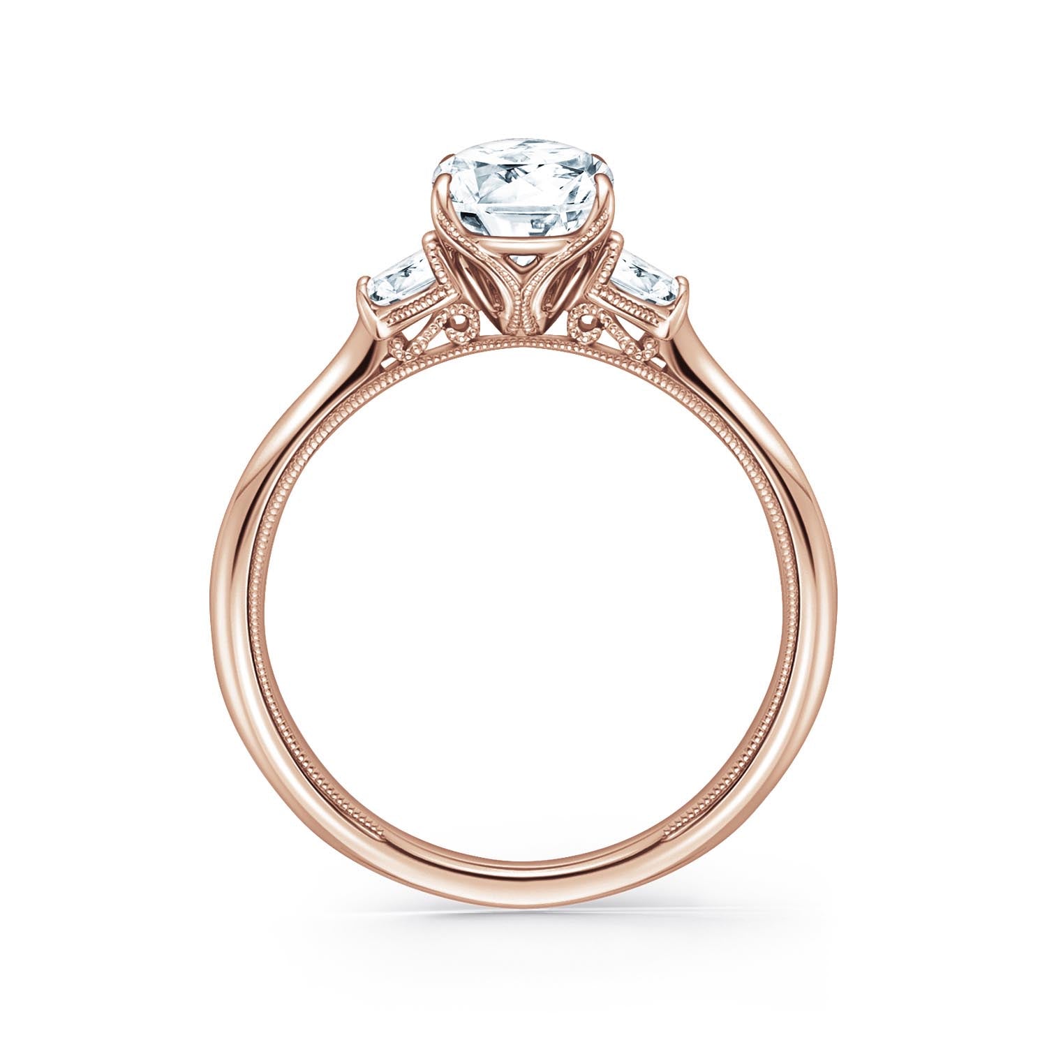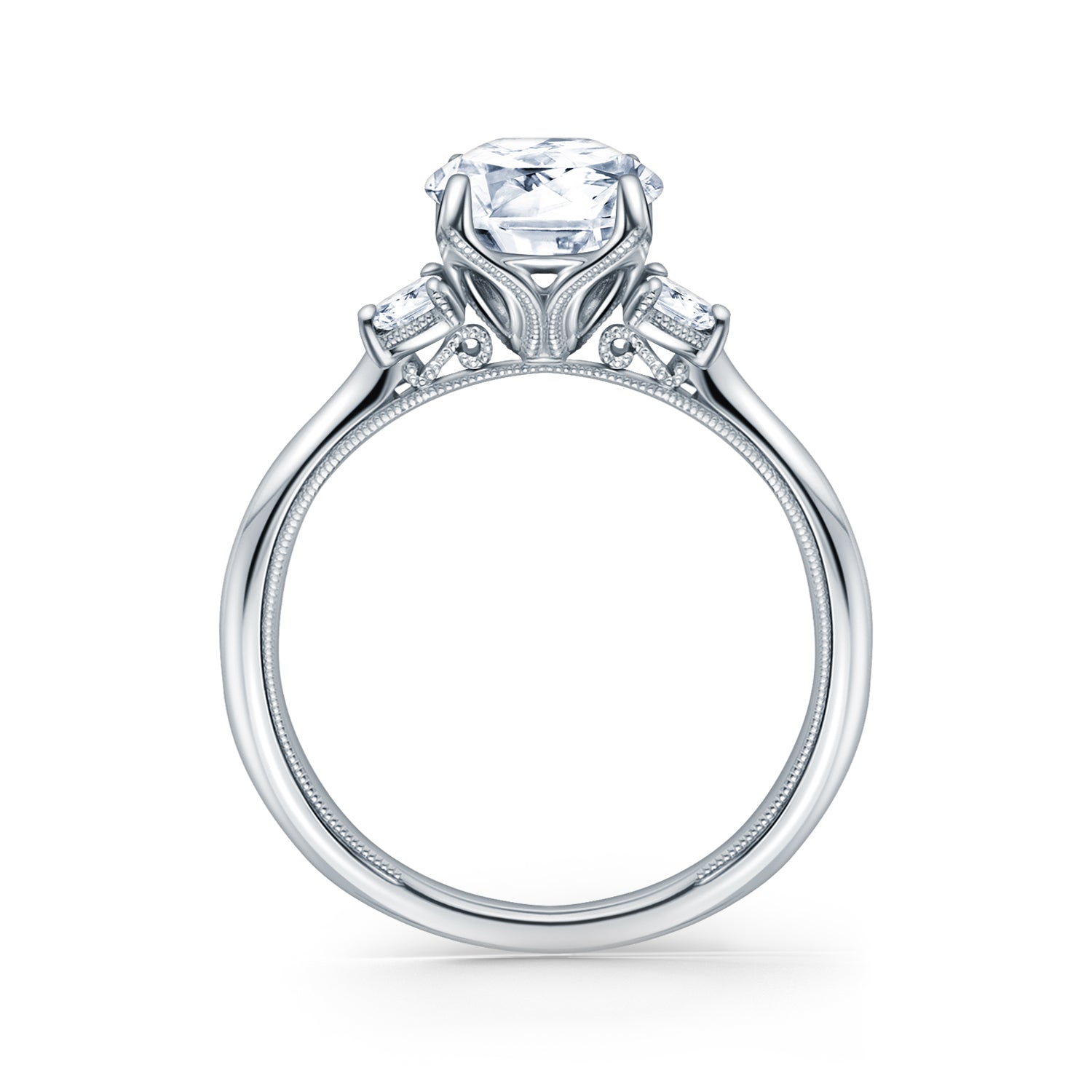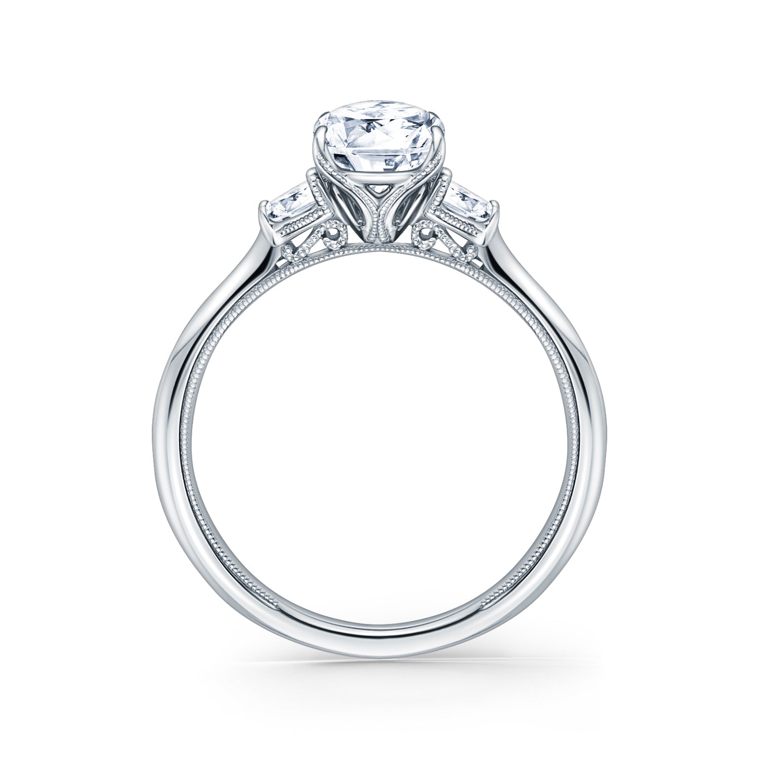 Three Stone Half Moon Side Stone Diamond Engagement Ring