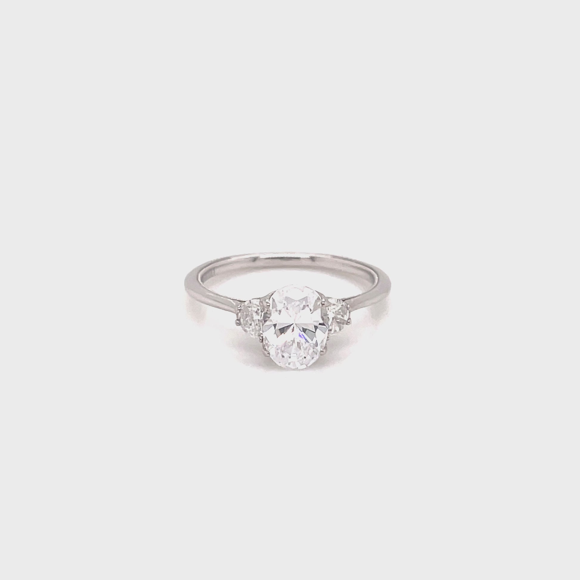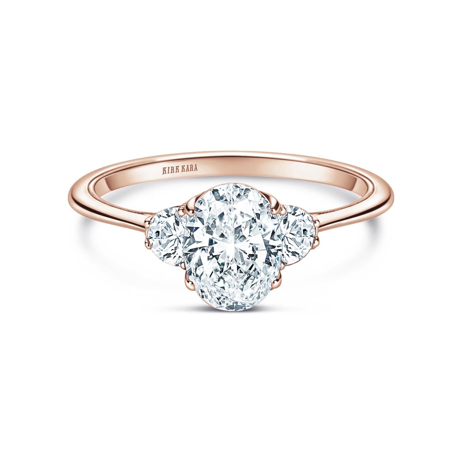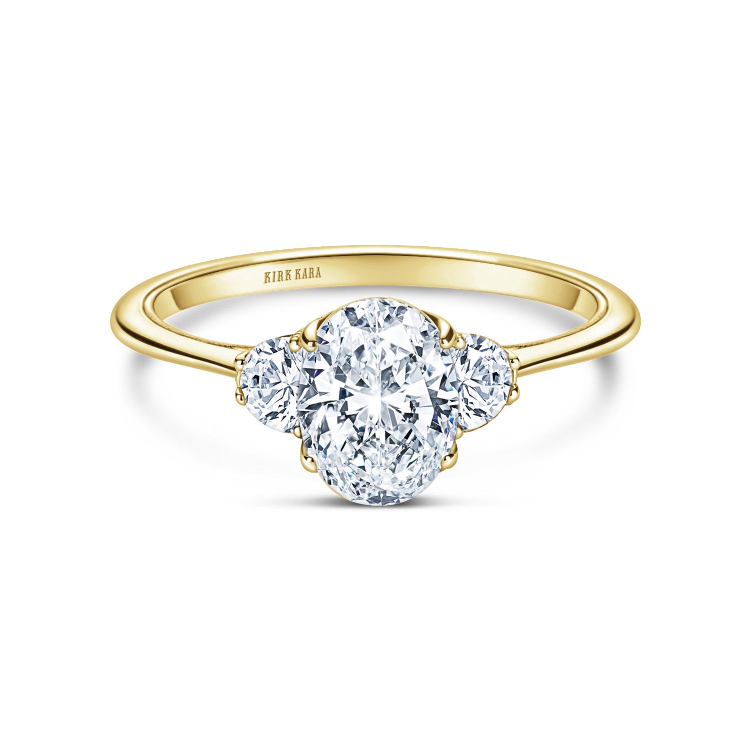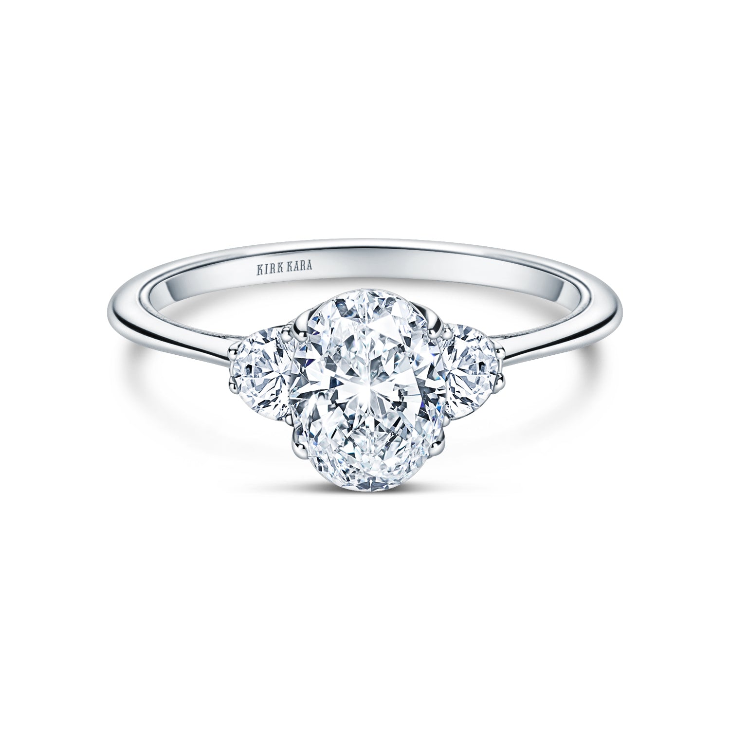 Three Stone Half Moon Side Stone Diamond Engagement Ring