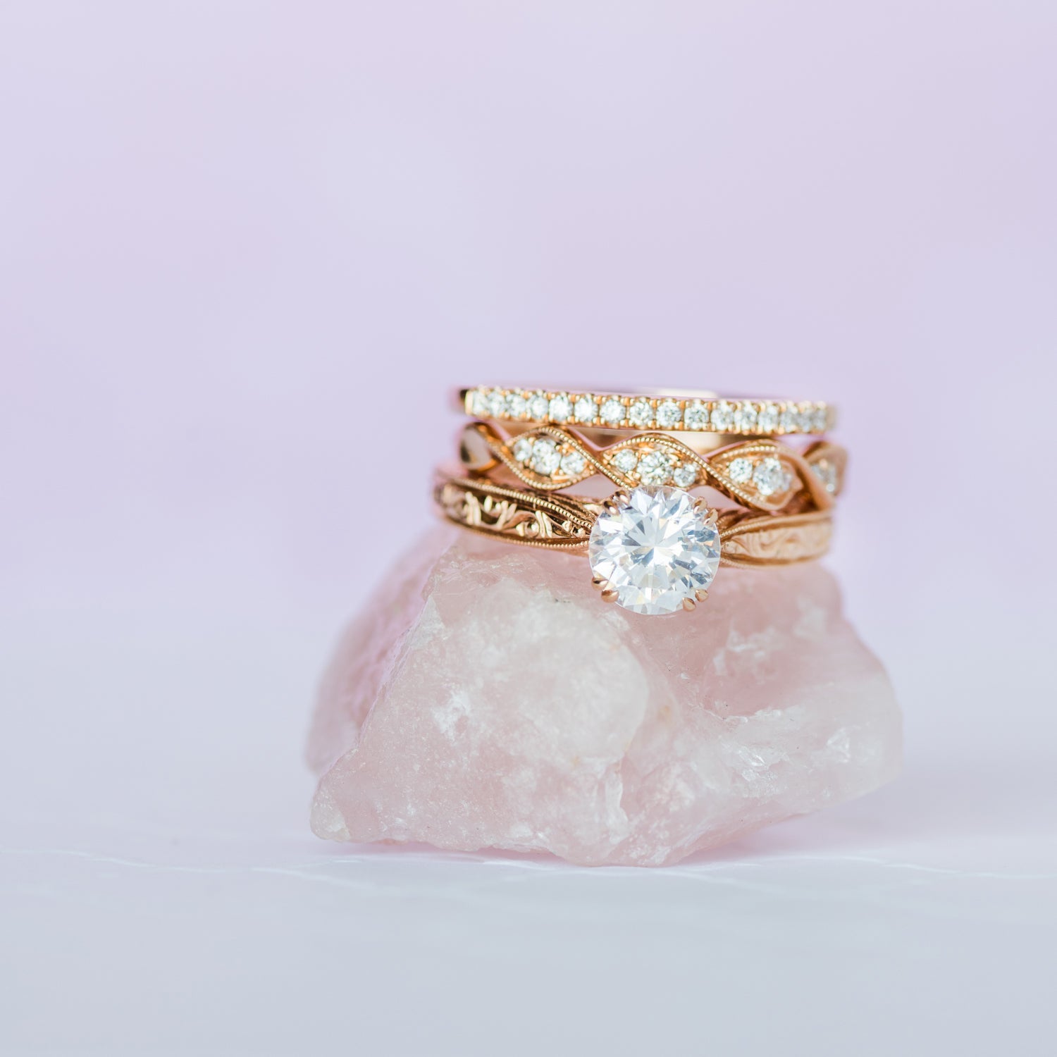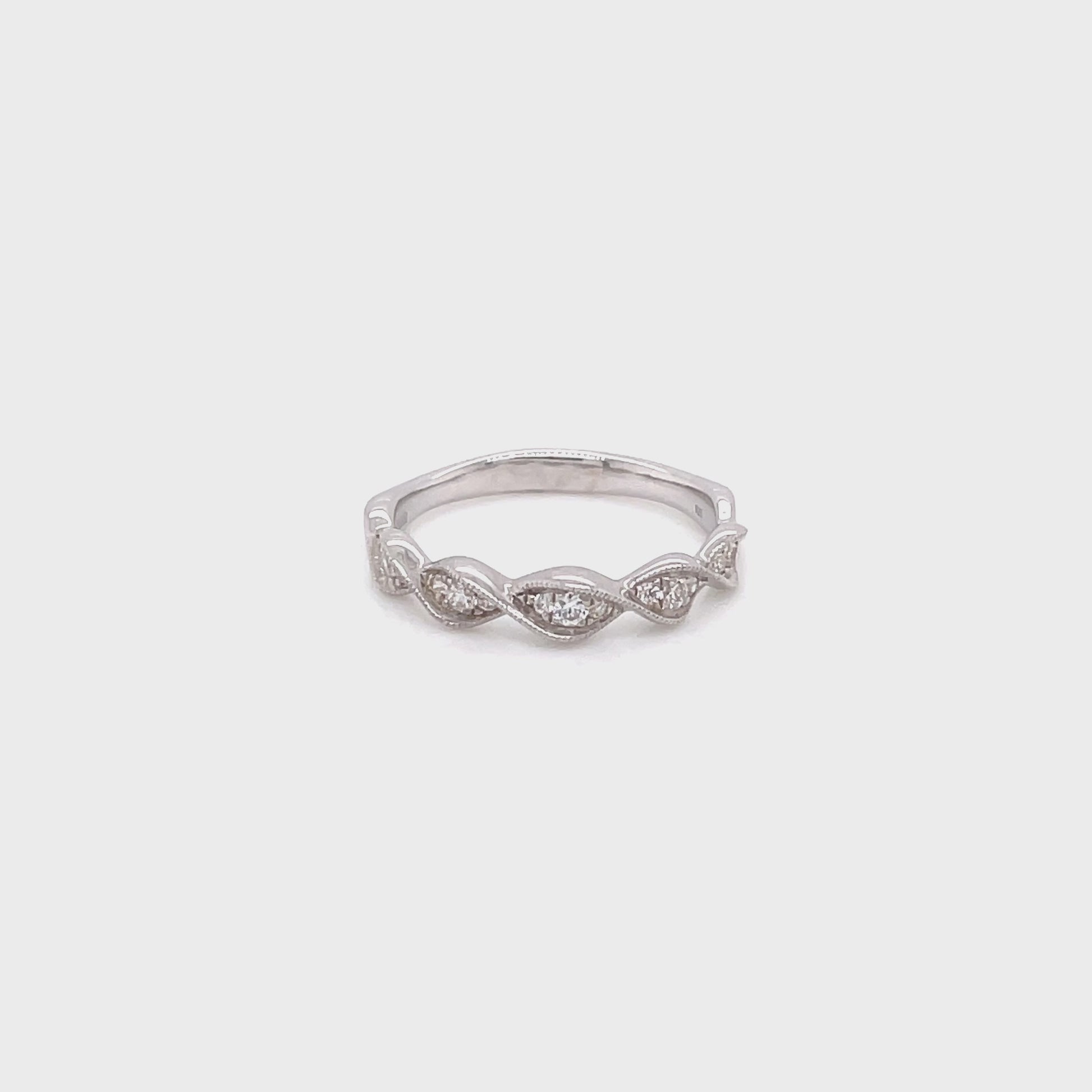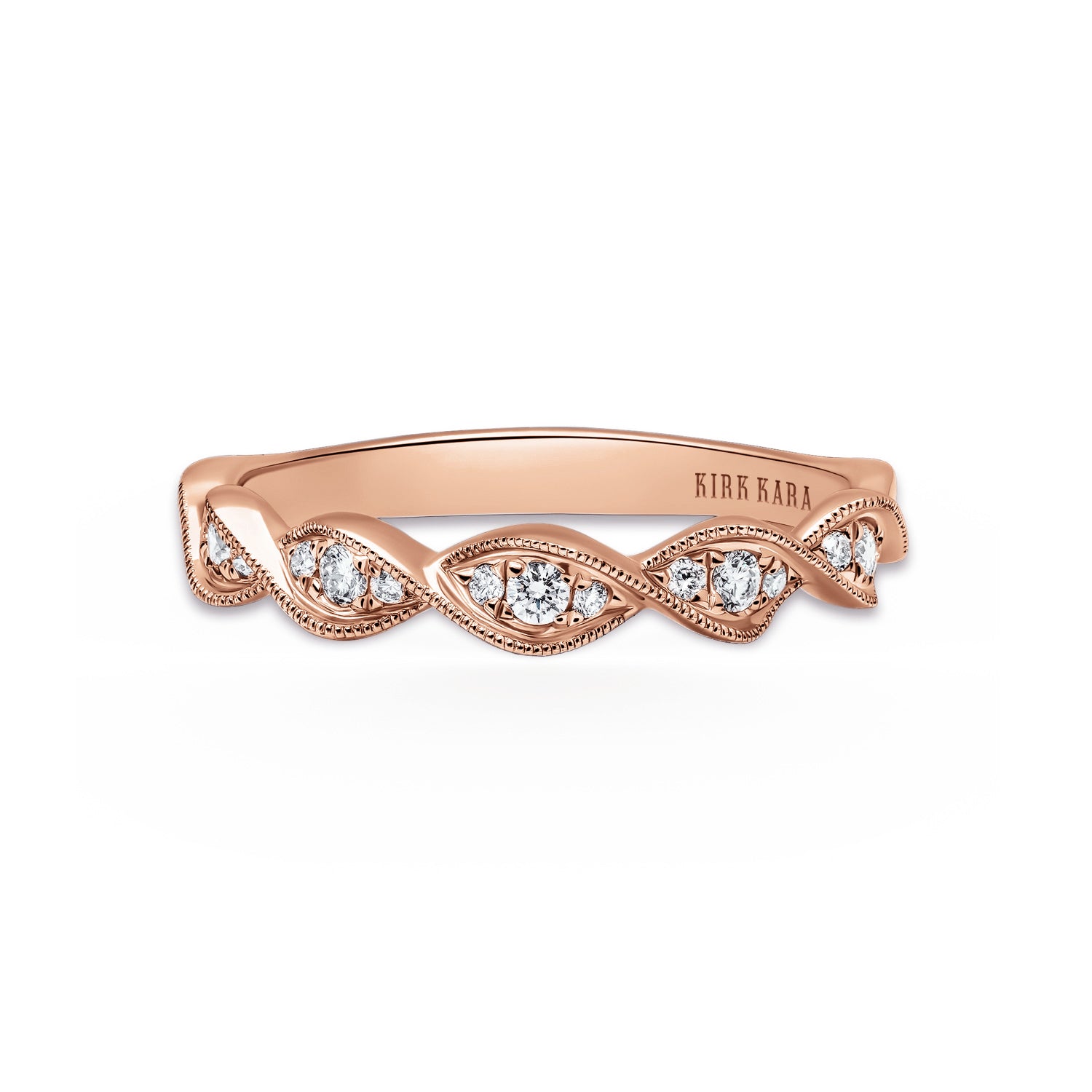 This romantic twist design is from the Pirouetta collection. It features 1/6 ctw of diamonds and signature handcrafted milgrain edging. Both lab grown and natural diamonds are available for this band.