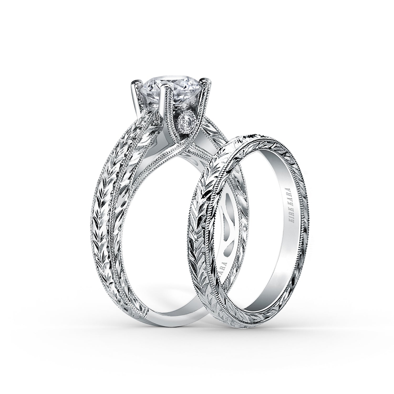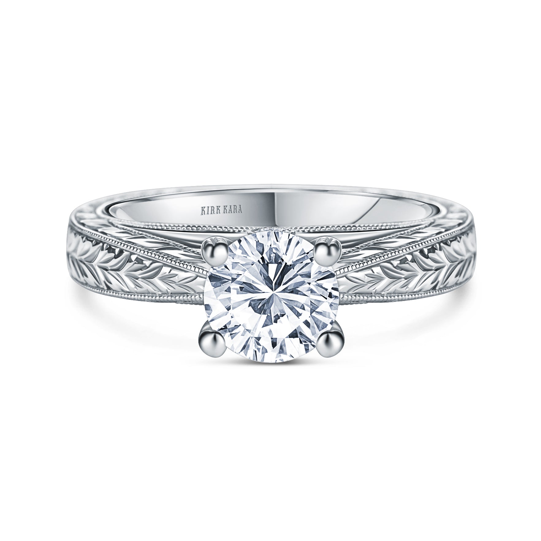 Wheat Engraved Cathedral Solitaire Engagement Ring