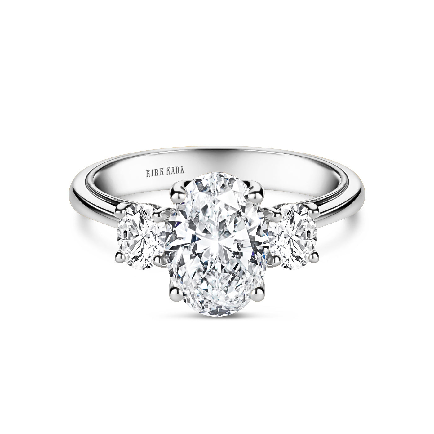 Wide Three Stone Oval Side Stone Diamond Engagement Ring