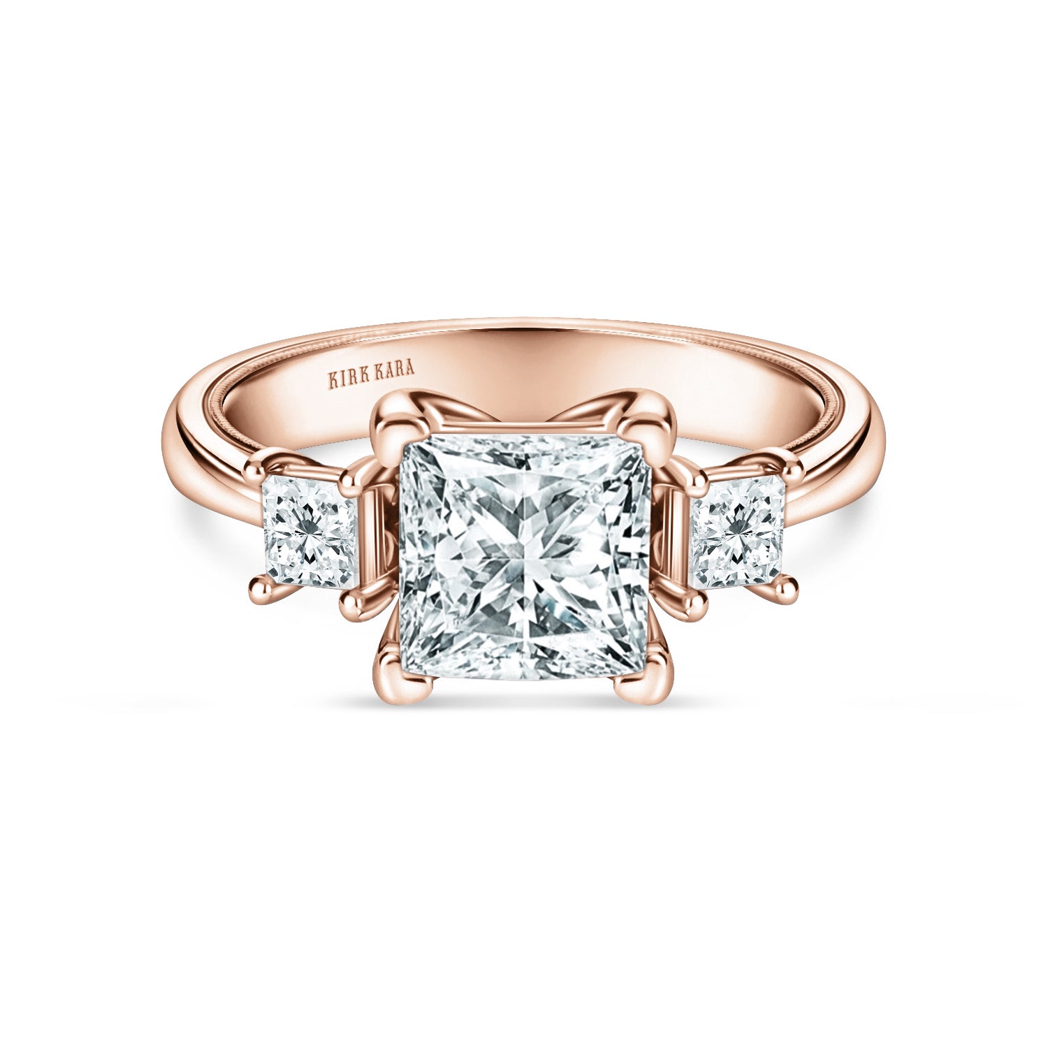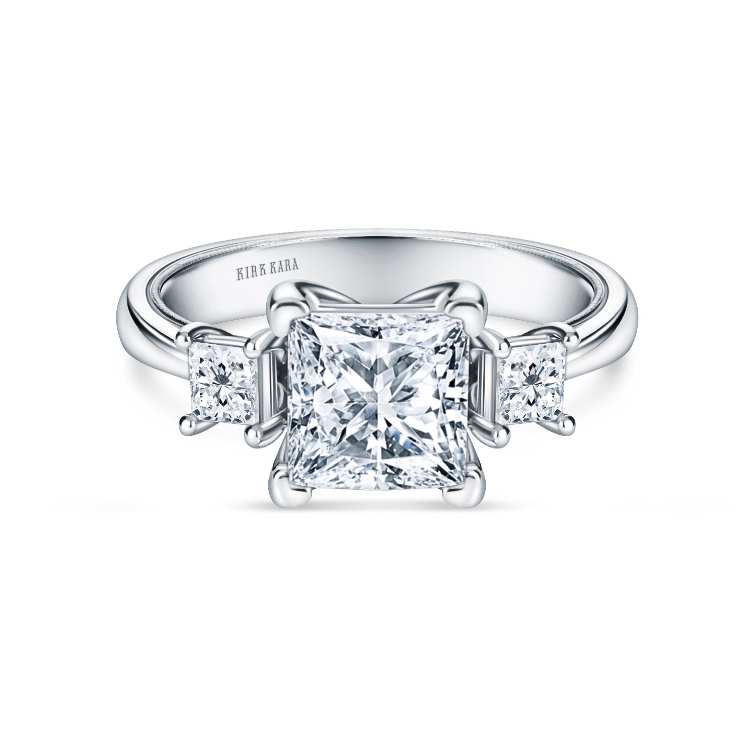 Wide Three Stone Princess Side Stone Diamond Engagement Ring